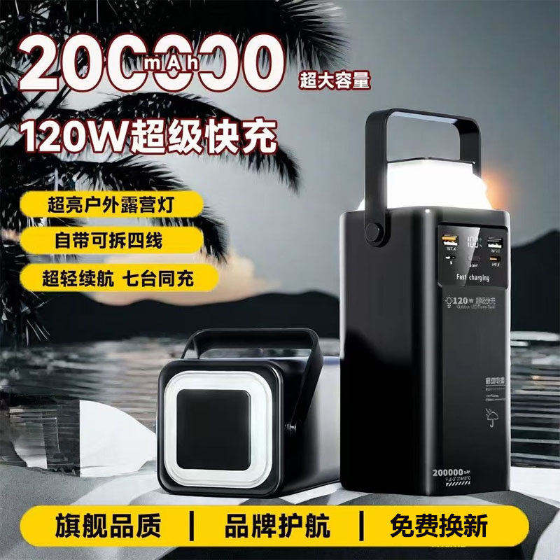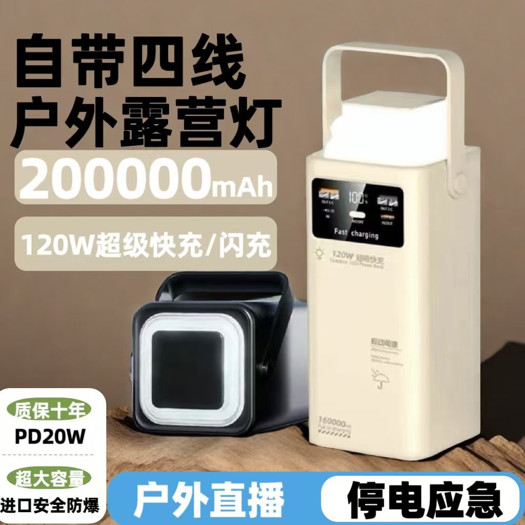 【新国标3C认证】大容量充电宝自带线移动电源超级快充外卖直播户外露营必备带野营灯