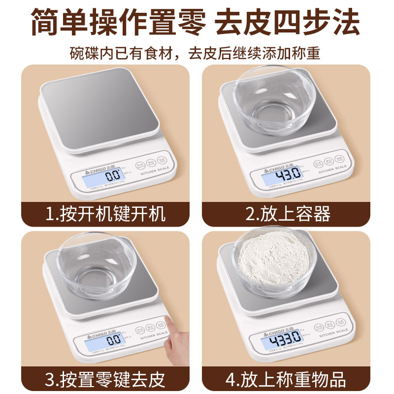 志高厨房秤电子秤称克秤小型精准电子称家用克数称食物秤烘焙克秤