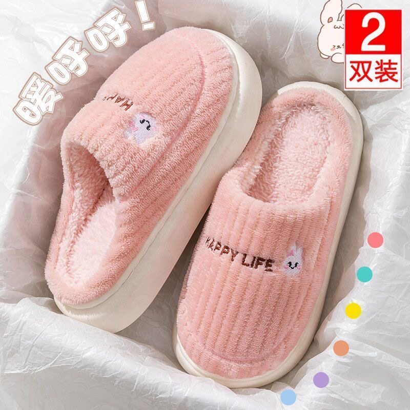 红豆踩屎感棉拖鞋女士秋冬季室内家居2025新款毛绒保暖情侣棉拖男