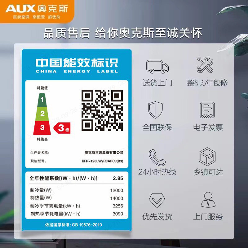 奥克斯空调大5匹p立式柜机一级变频冷暖商用客厅方柜超强送风380V
