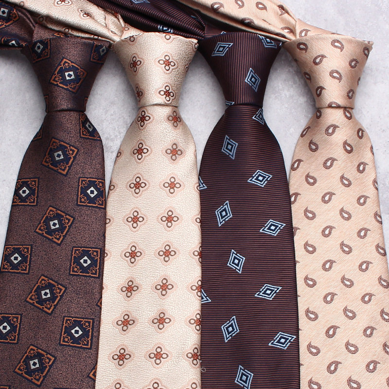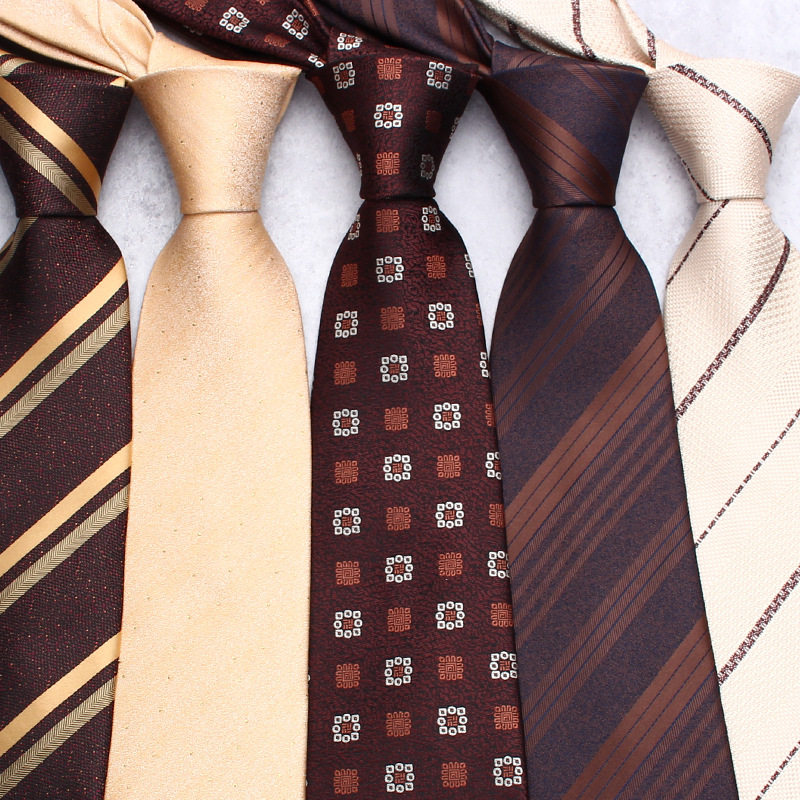 蕾尔咖色领带男士商务时尚涤丝手打领带厂家现货批发多色领带可选
