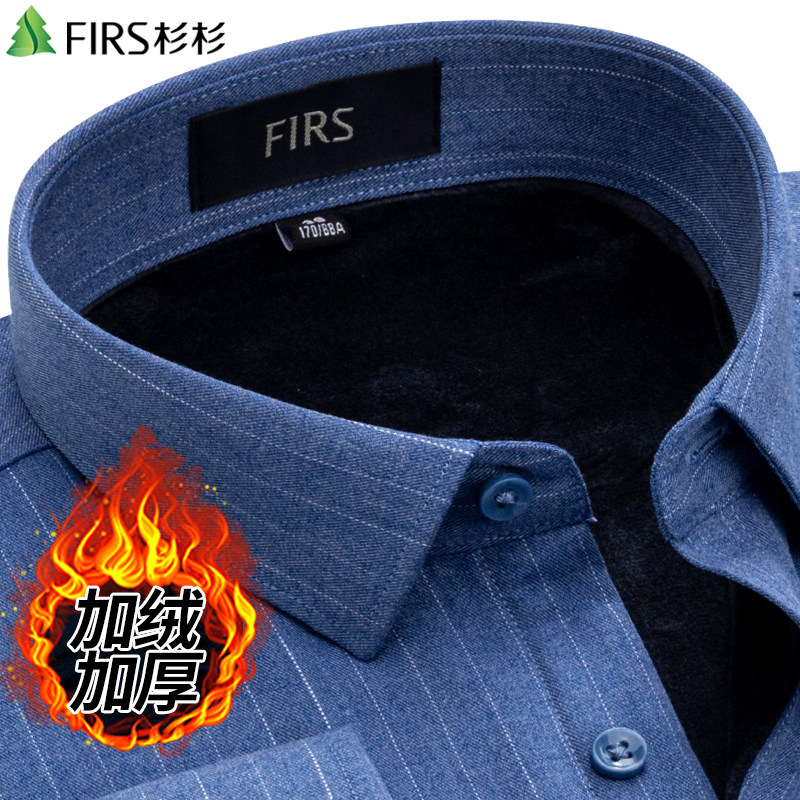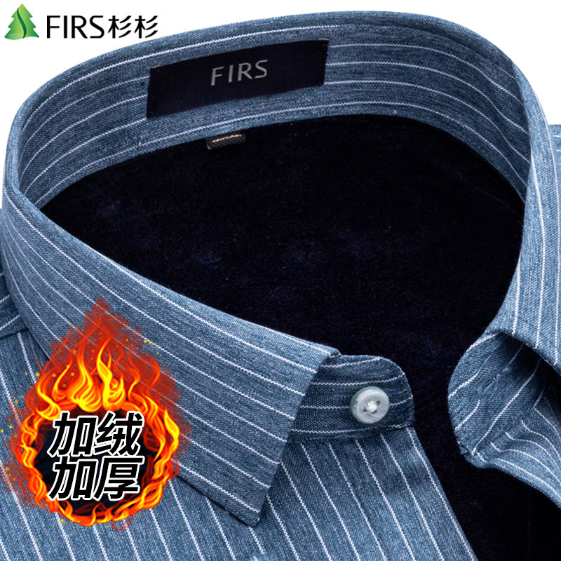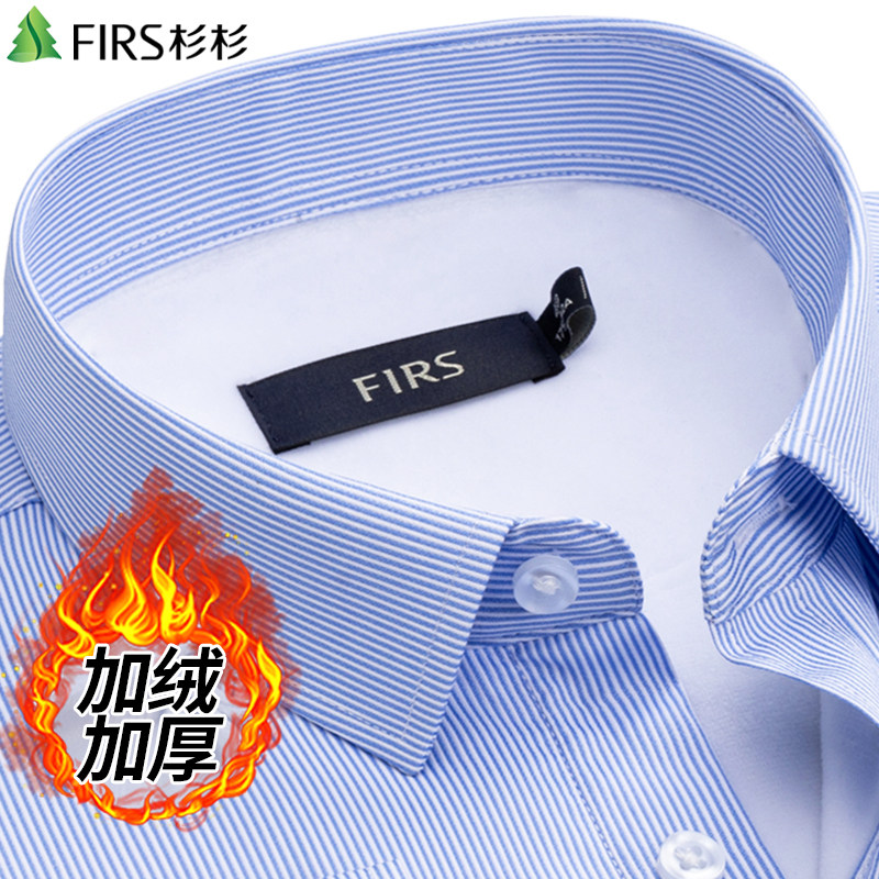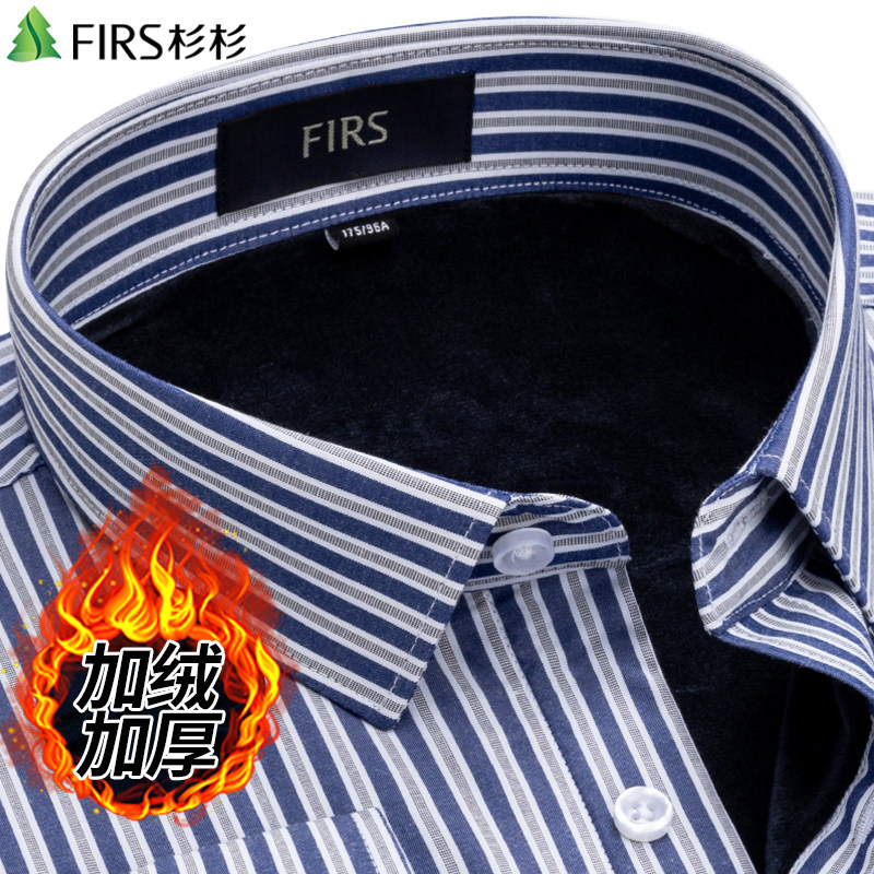 【加绒加厚】杉杉长袖男士衬衫保暖衬衣寸秋冬条纹中老年商务正装