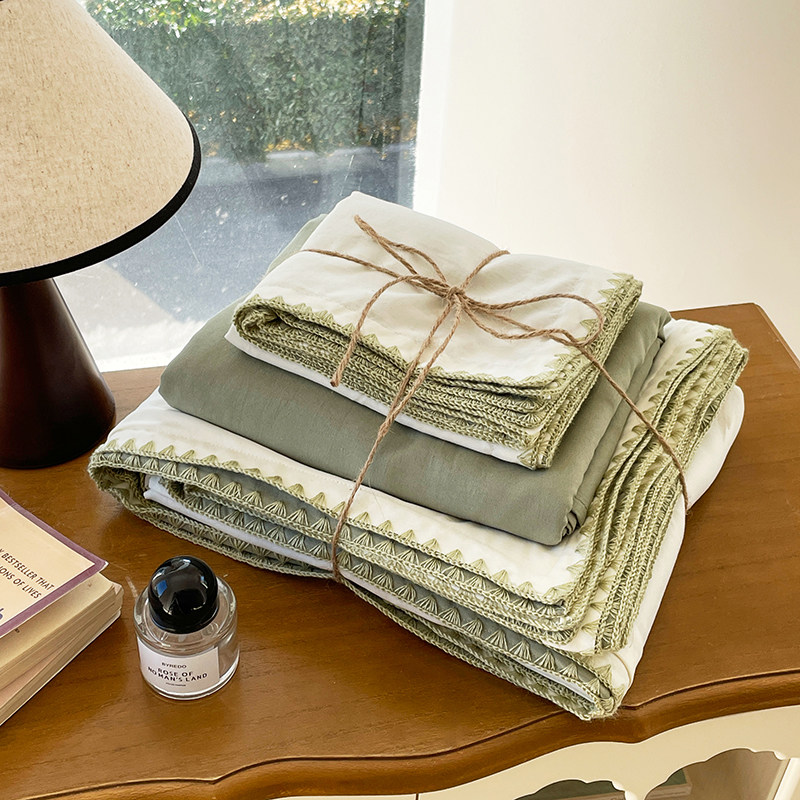 无印良品高级感床上四件套全棉纯棉双人被套床单笠轻奢床品三件套