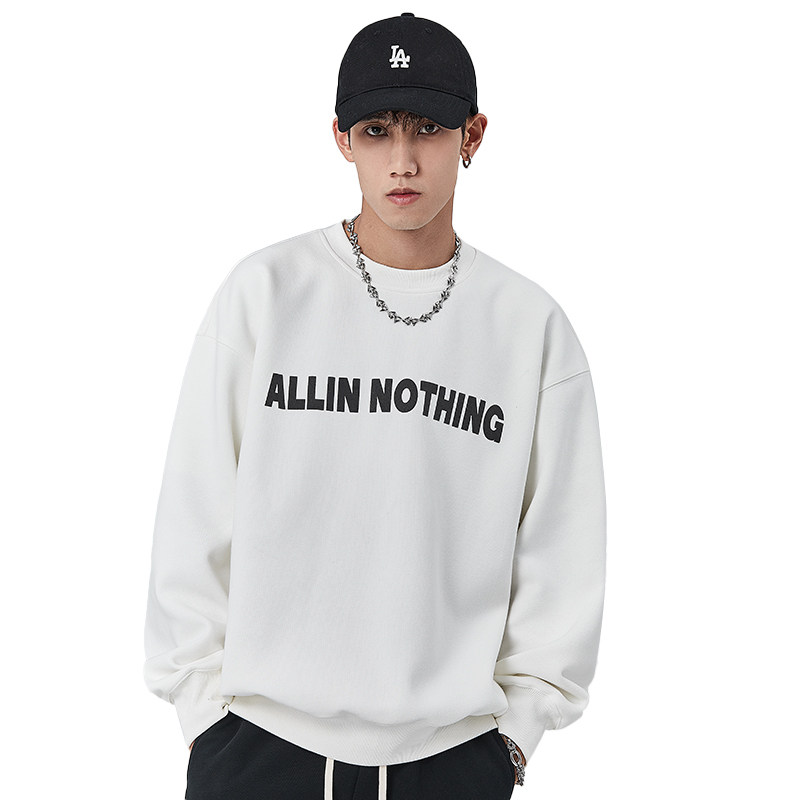 ALLIN 白色字母卫衣男春秋潮流圆领无帽宽松打底衫潮牌情侣装上衣