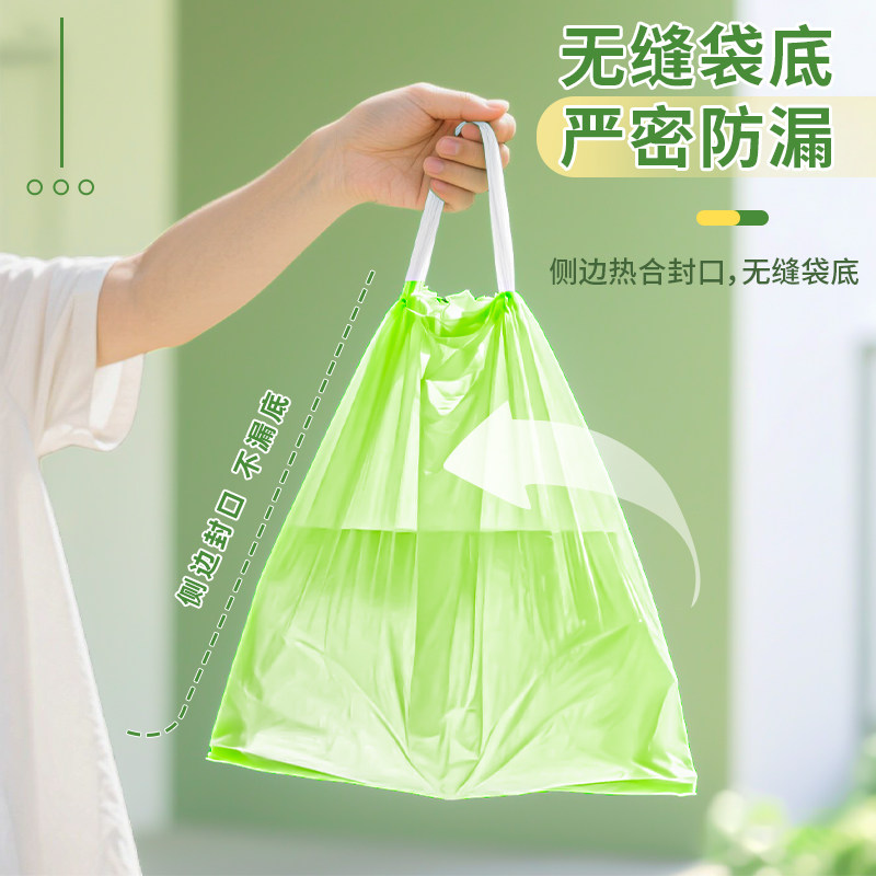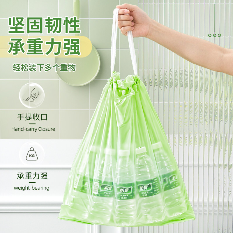 青崎可降解拉抽绳垃圾袋家用加厚手提式厨房环保免撕自动收口大号
