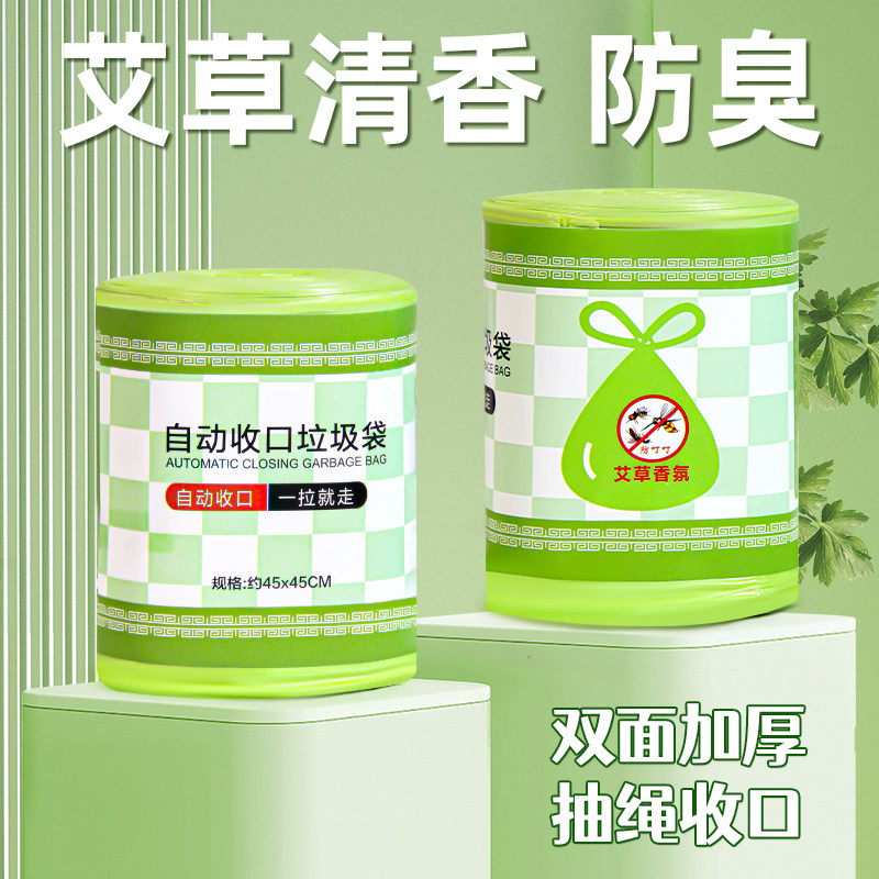 艾草垃圾袋家用手提式加厚手提大卷除臭抽绳袋子艾草加大号防臭