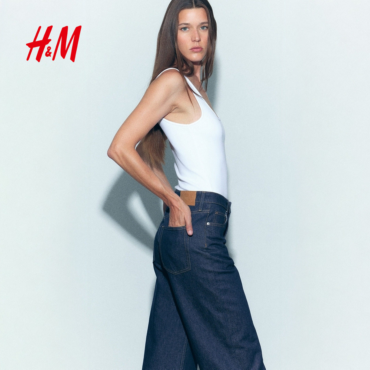 HM女装牛仔裤春季阔腿版型直筒复古潮流通勤修身款长裤1222670