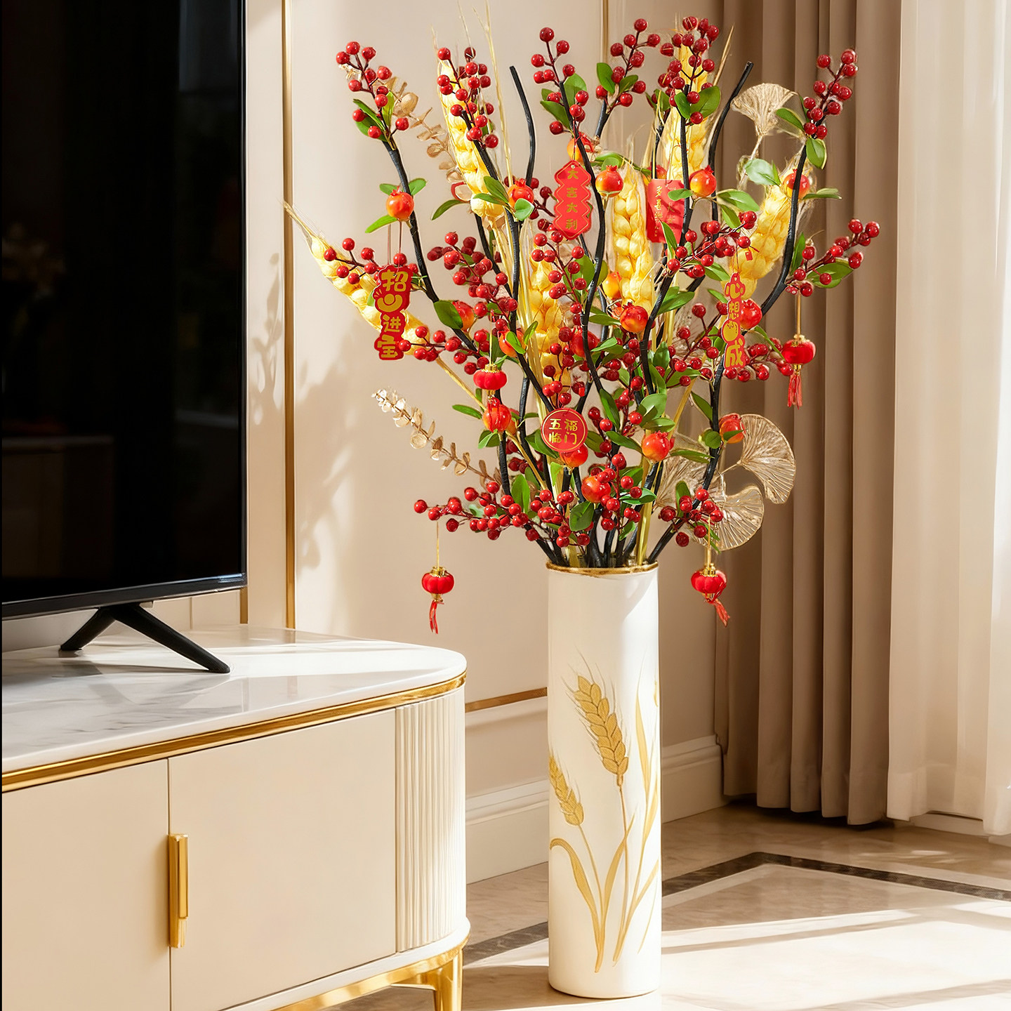 新款年宵花发财果 仿真水果 仿真红果装饰花客厅落地摆设婚前乔迁