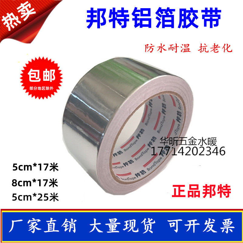 邦特铝箔胶带5cm8厘米17米长铝箔纸耐高温油烟机密封隔热整箱36卷