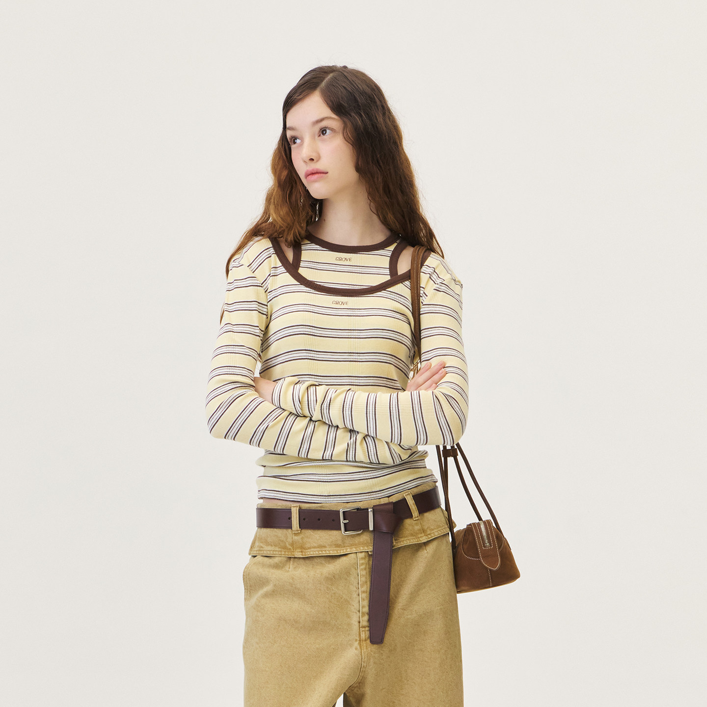 GROVE官方旗舰店2026PS春季新款长袖T恤撞色边圆领打底GP26TSK12