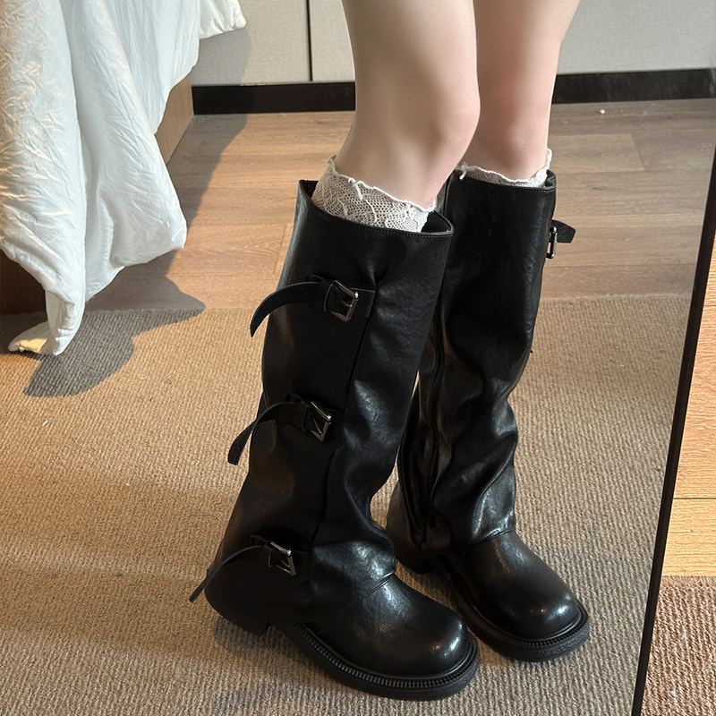 他她女孩长筒靴女2025秋冬新款显瘦美拉德靴裤黑色中筒自在粗跟
