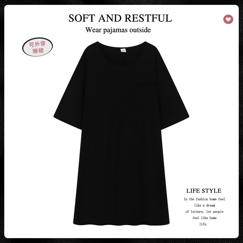 连衣裙女莫代尔短袖睡裙夏薄款打底裙外穿宽松百搭家居服大码长裙