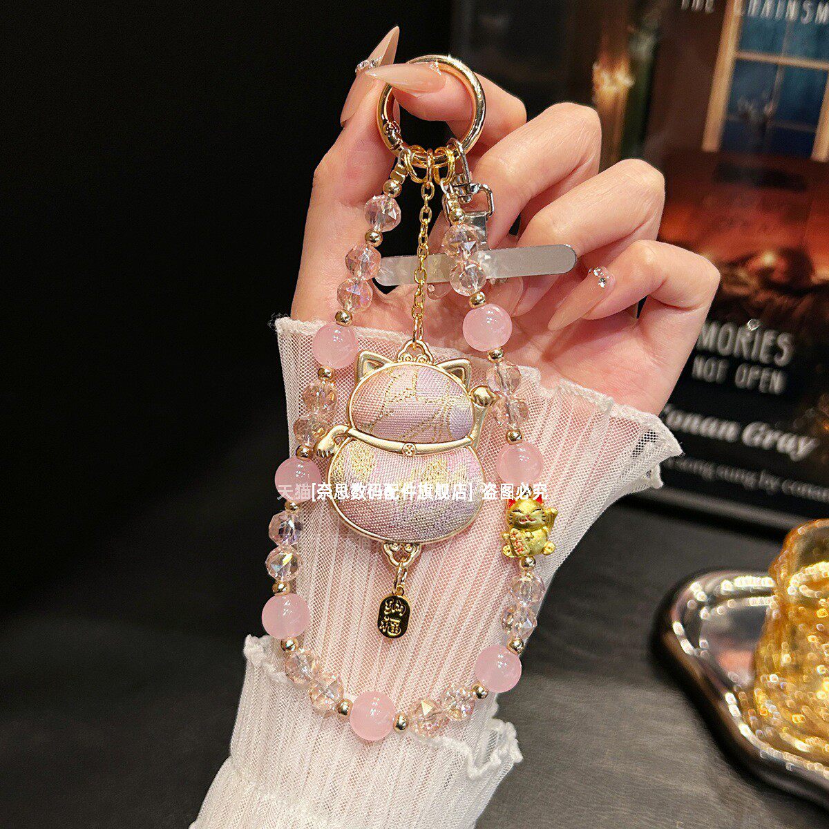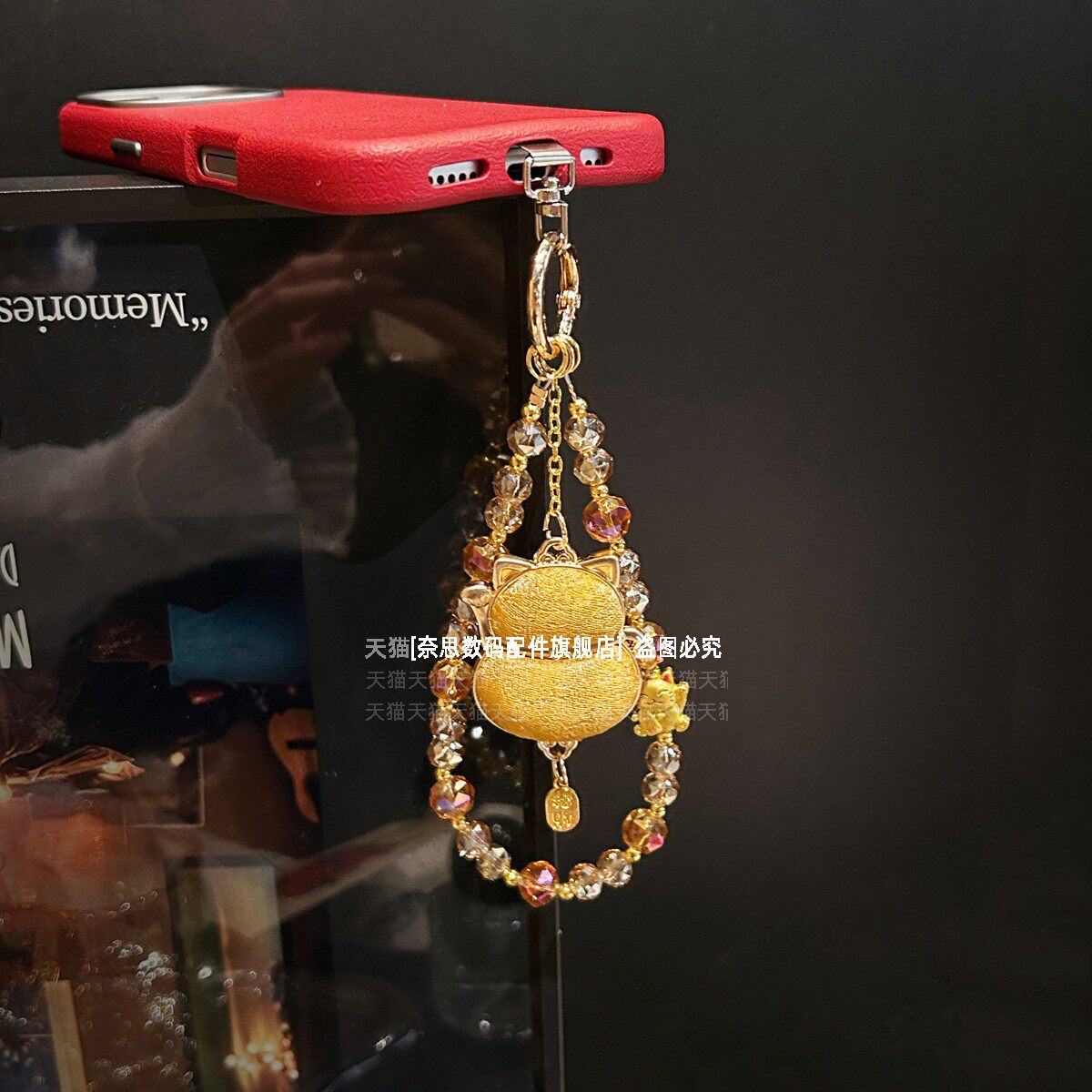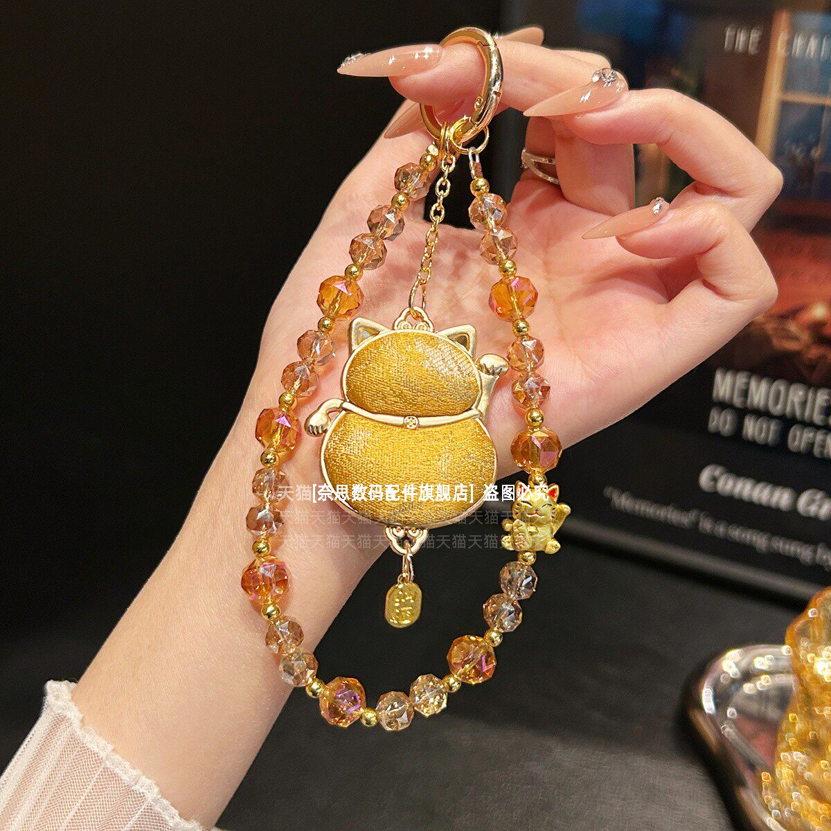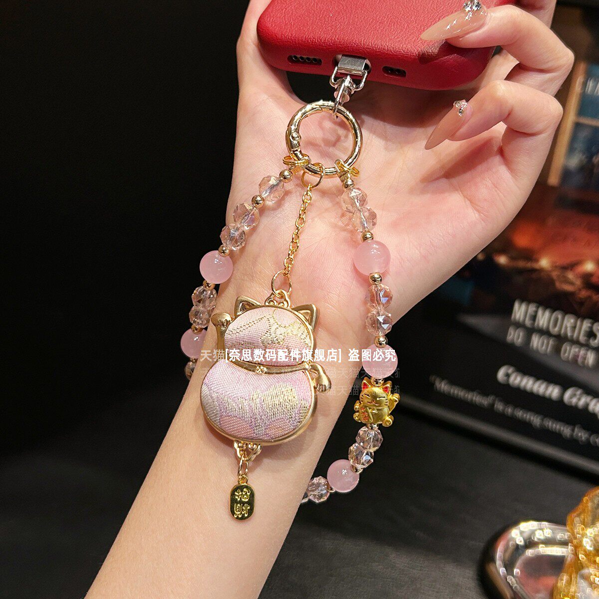 新中式宋锦招财猫手机链重工挂饰高级水晶手腕链条挂绳精致中国风非遗刺绣吊坠挂链轻奢独特手链女挂件垫片壳