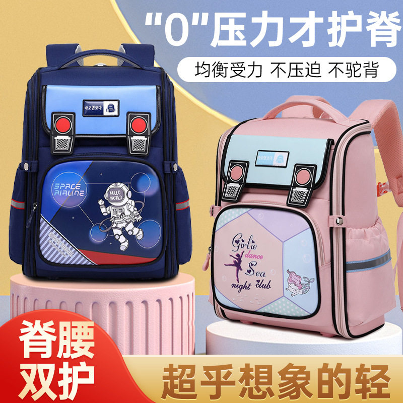 新品 新款小学生书包女轻便减负护脊一体式全开优质儿童双肩包1-6