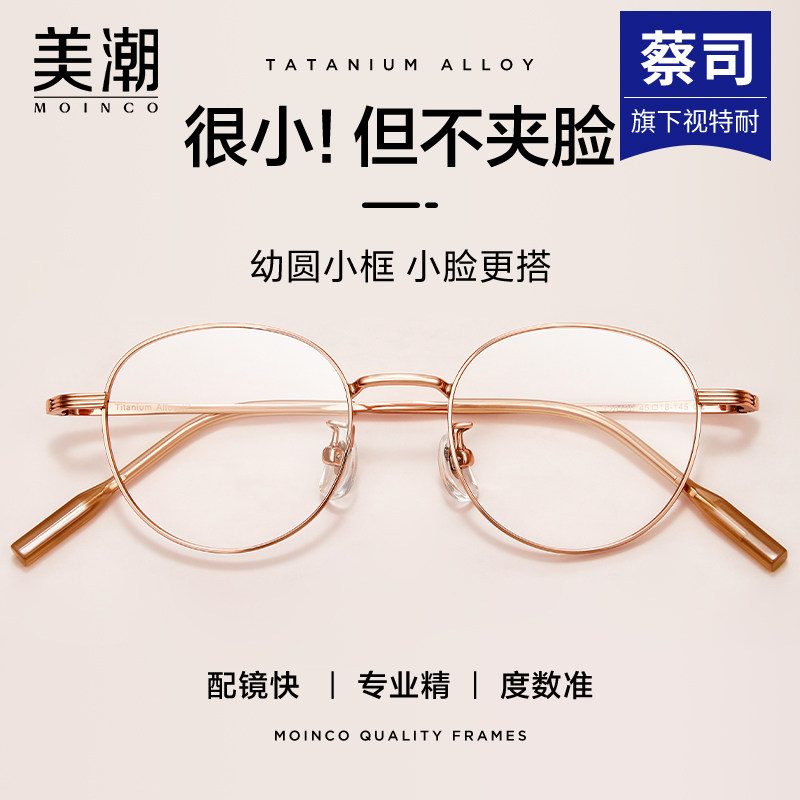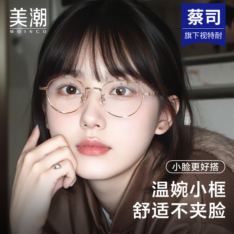纯钛圆框近视眼镜蔡司防蓝光女可配度数素颜文艺细边眼镜框镜架男