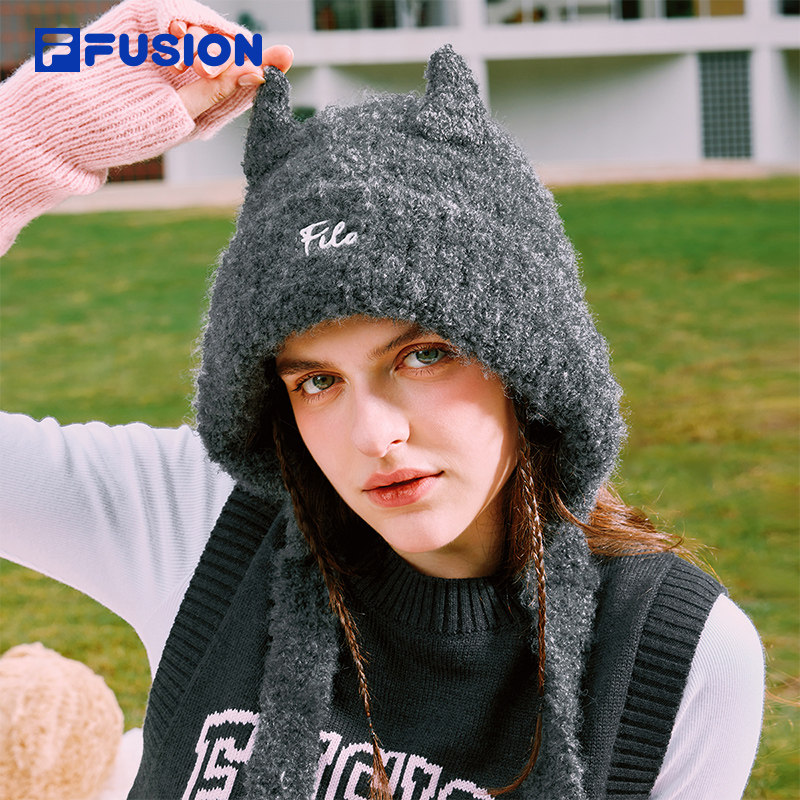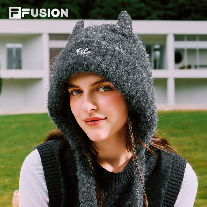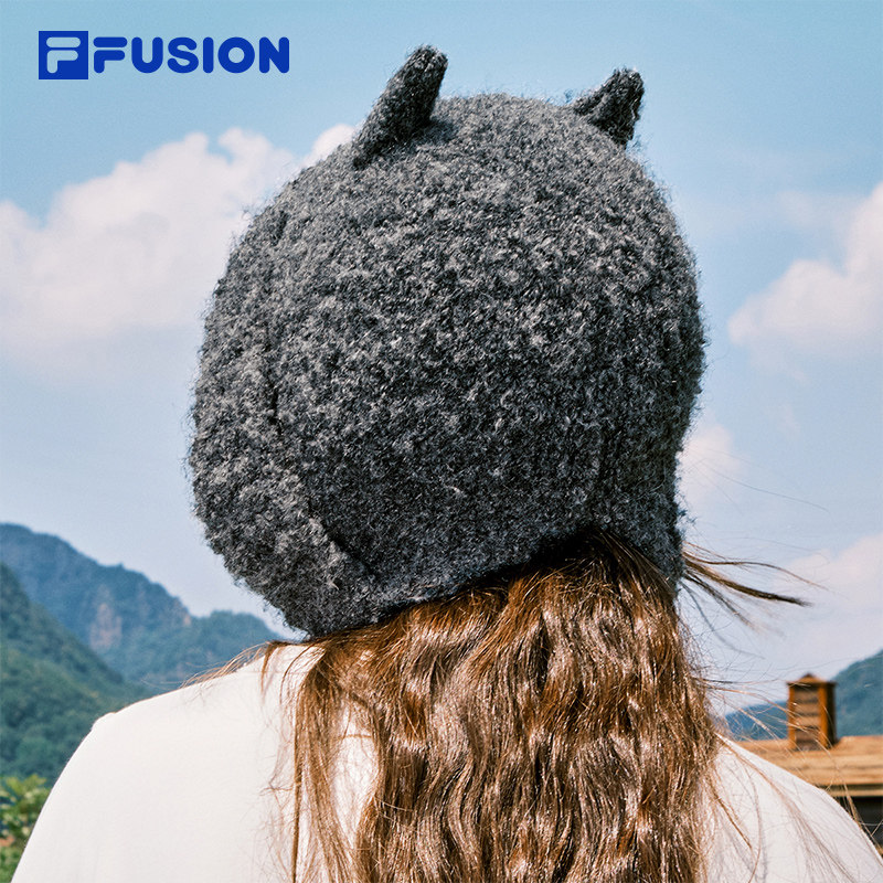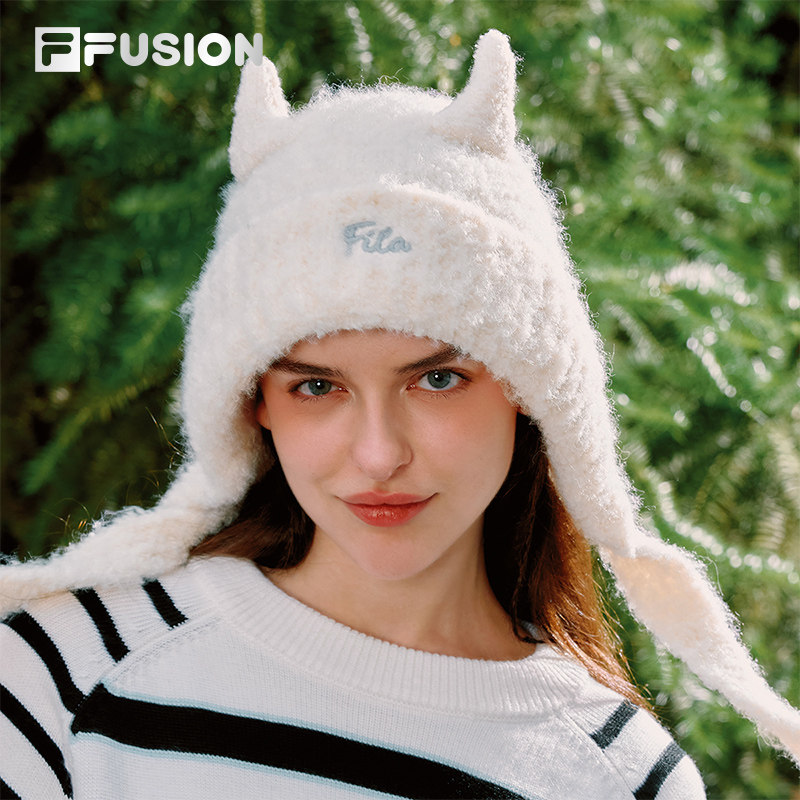 羊角帽|FILA FUSION斐乐潮牌情侣款针织帽2025冬季新款休闲毛线帽