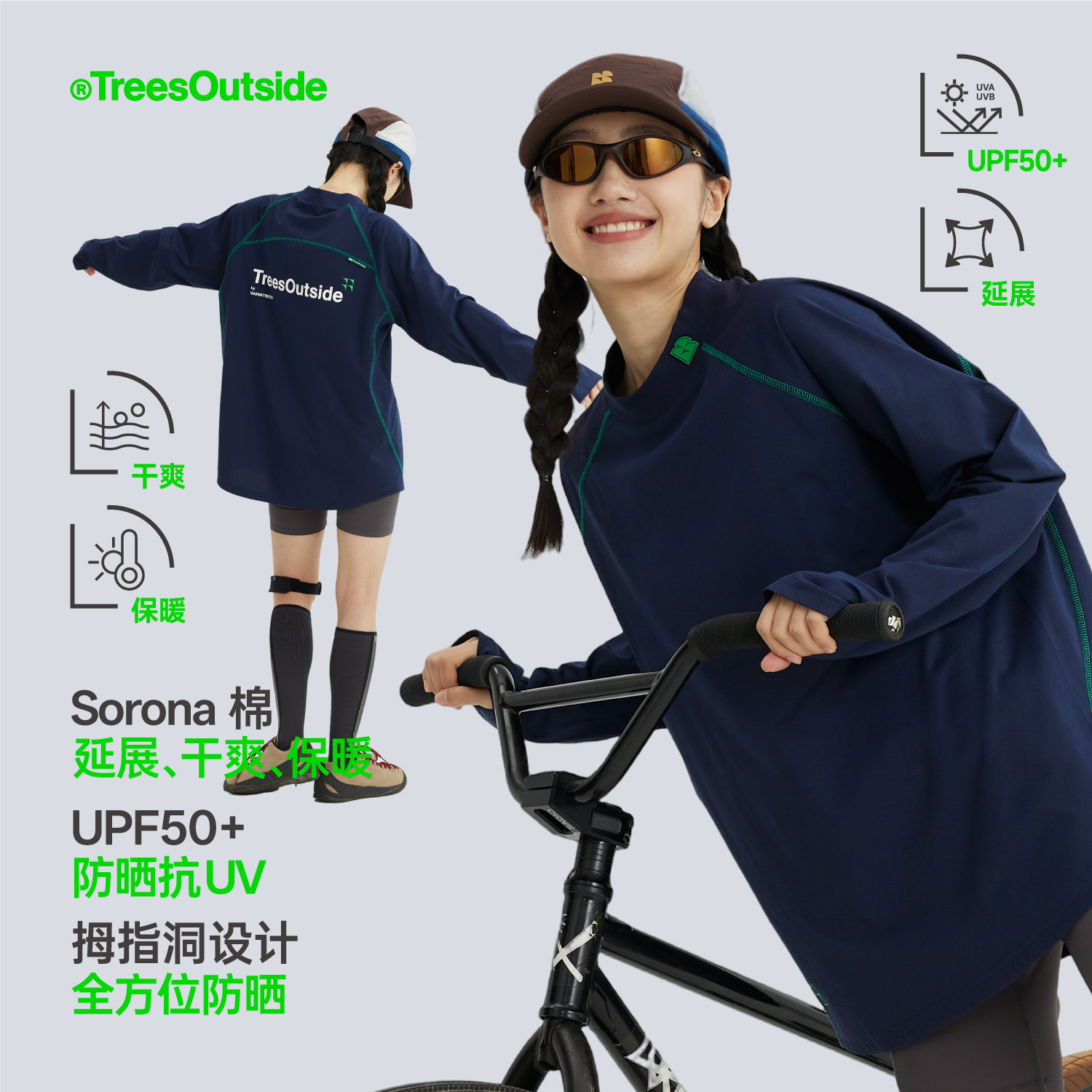 TreesOutside户外骑行UPF50+长袖T恤运动骑行服速干防晒运动T恤