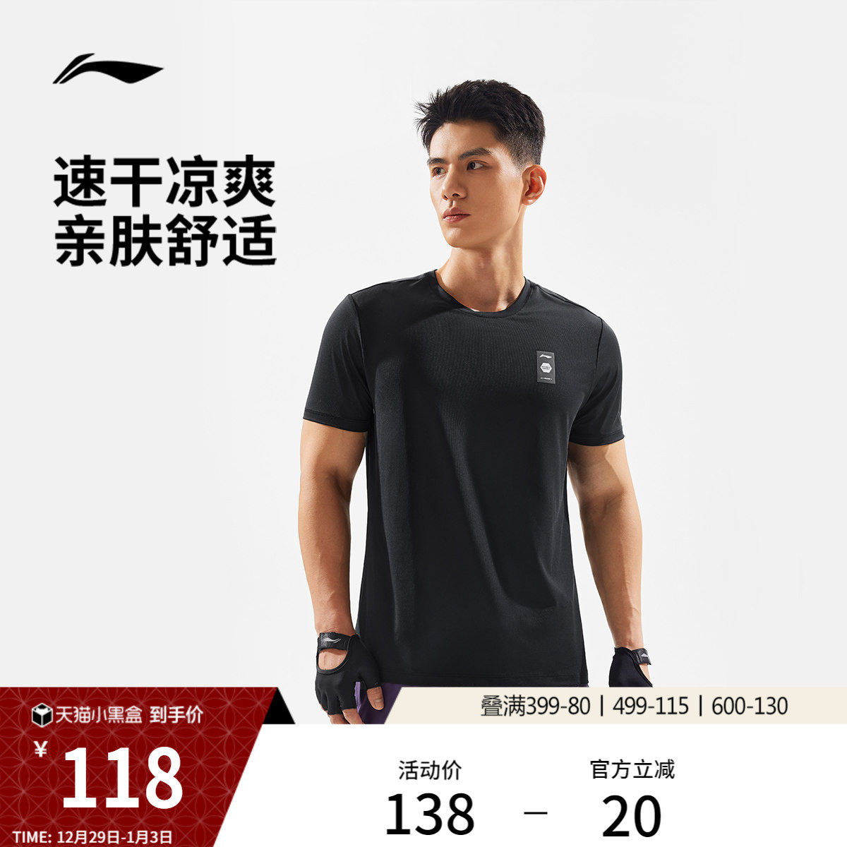 李宁短袖T恤男士官方新款健身系列圆领上衣夏季针织长袖男运动服