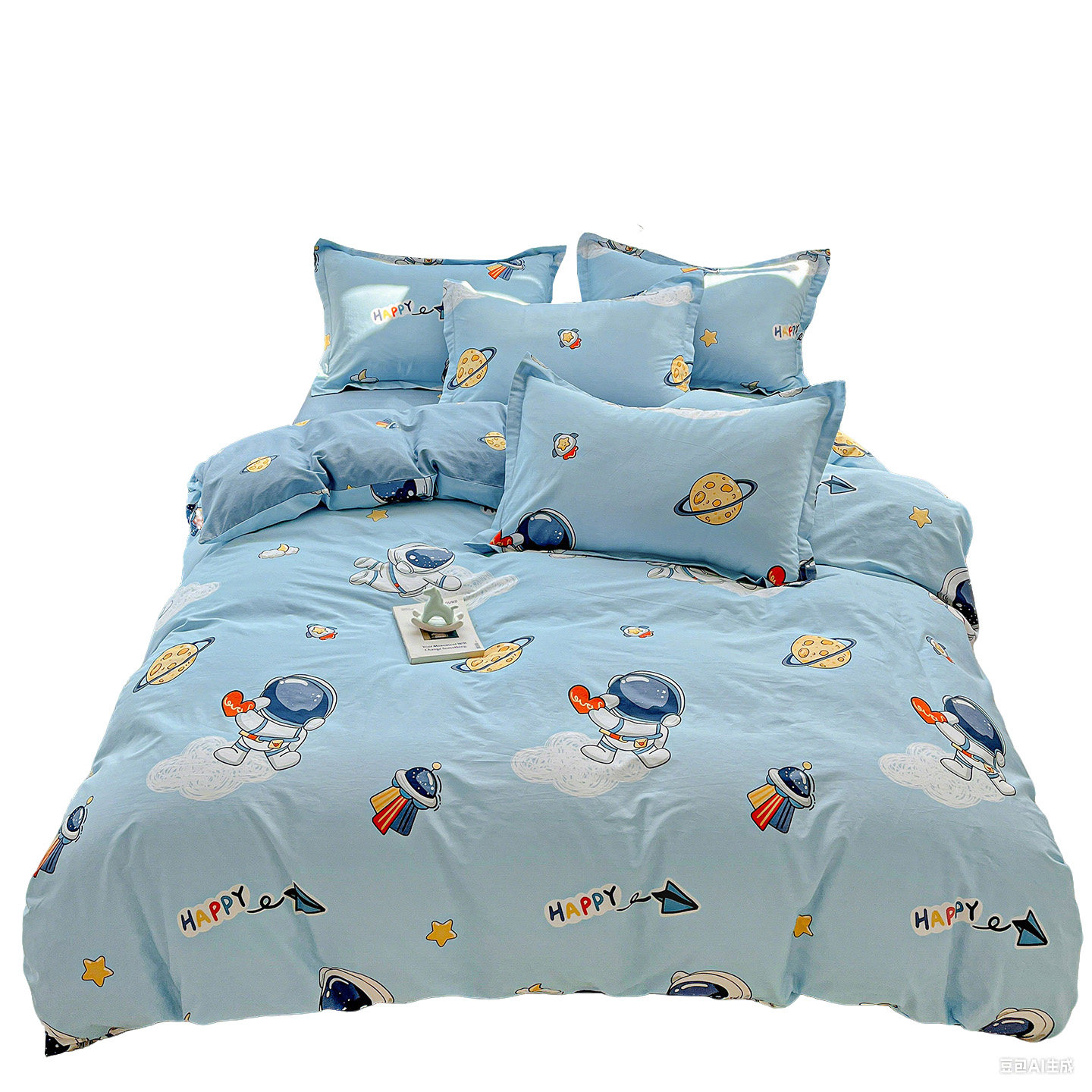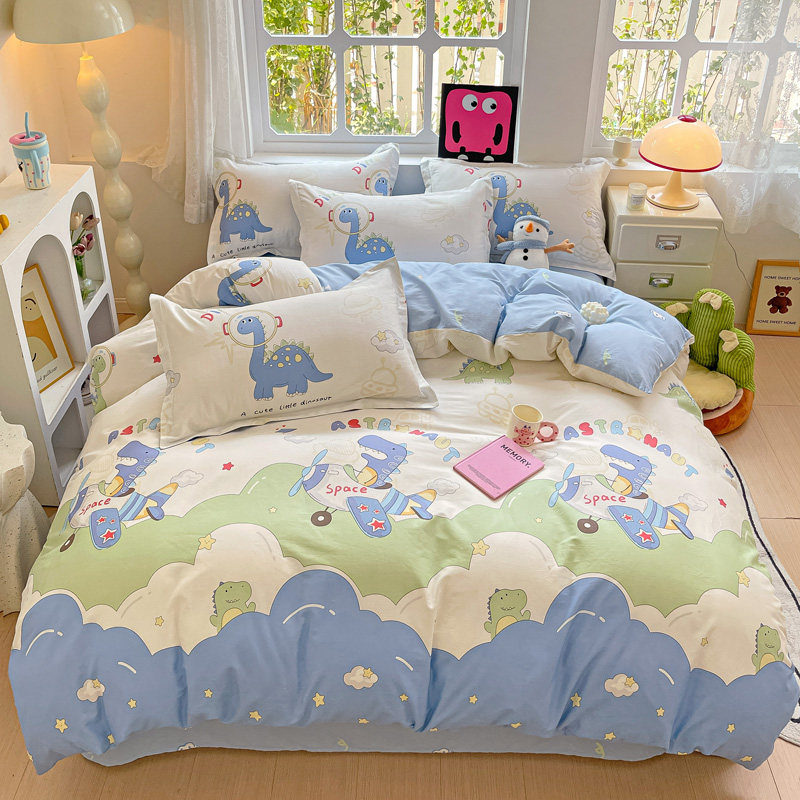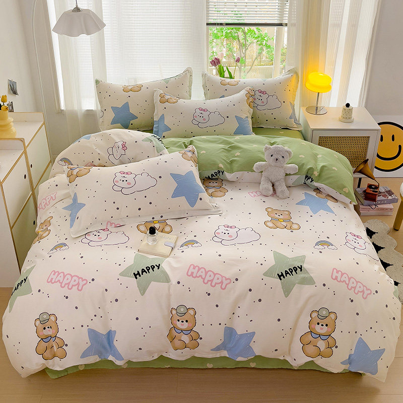 无印良品全棉四件套学生宿舍纯棉卡通儿童被套床单三件套床上用品