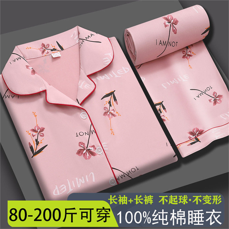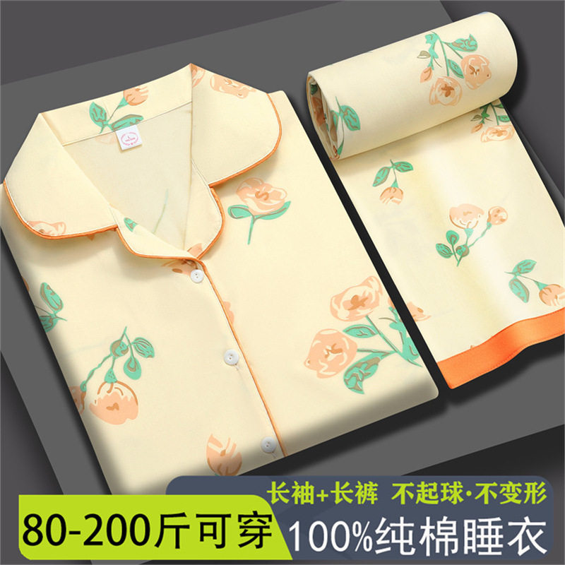 纯棉妈妈套装纯棉睡衣女士春秋季长袖中老年大码薄款家居服