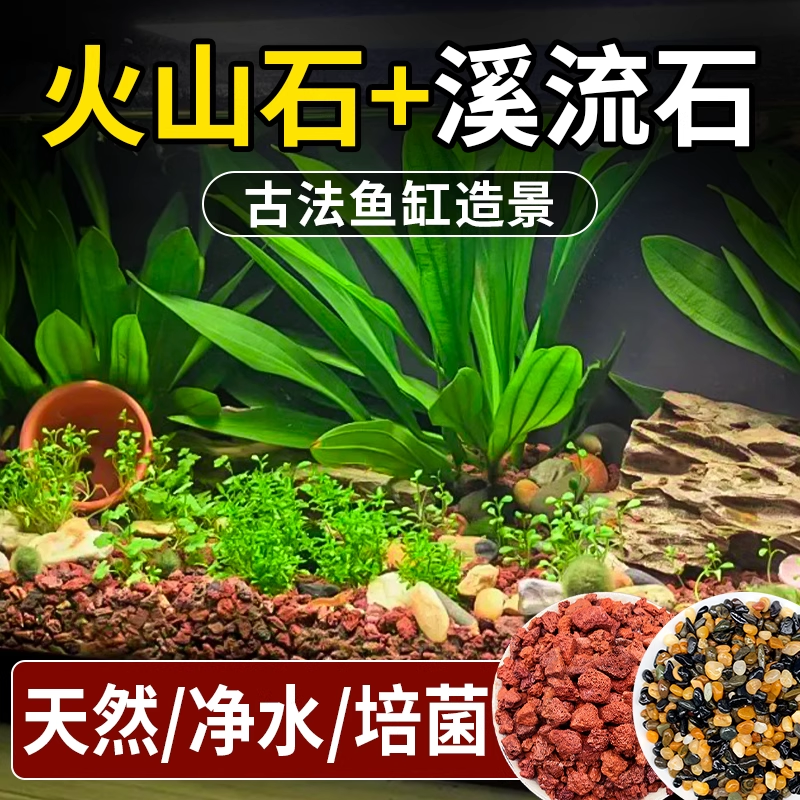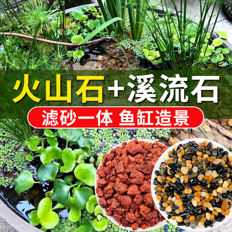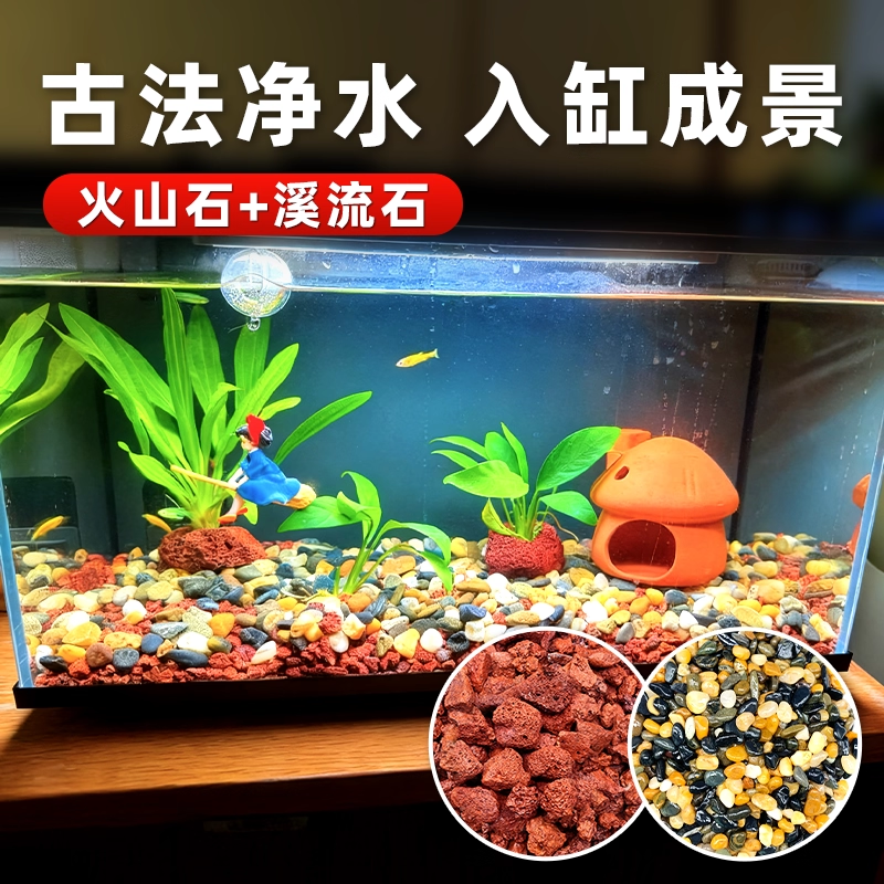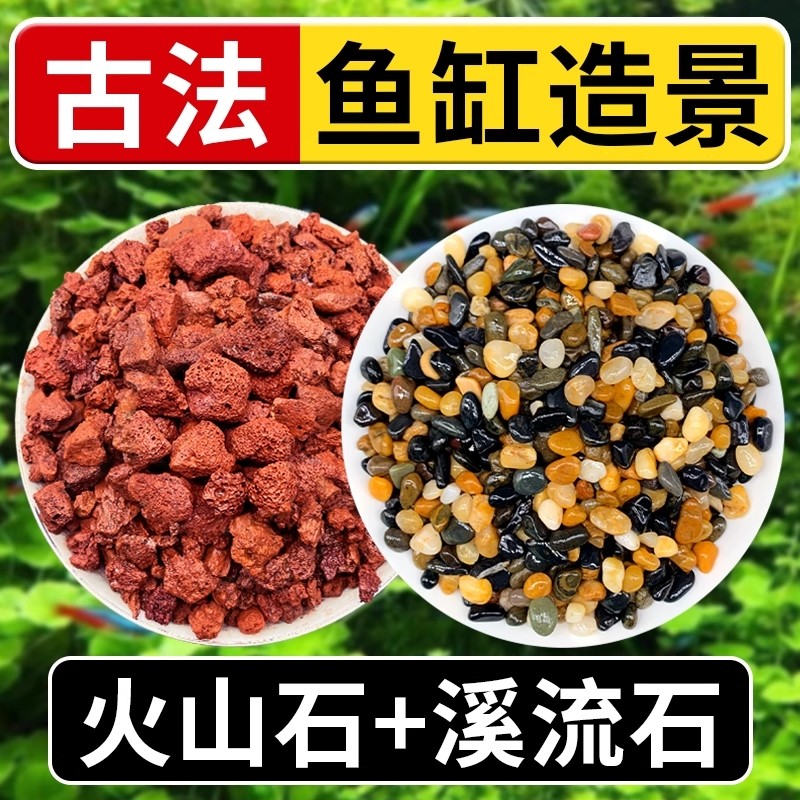 鱼缸专用溪流石底砂造景装饰套餐古法养鱼火山石铺底过滤专用石子