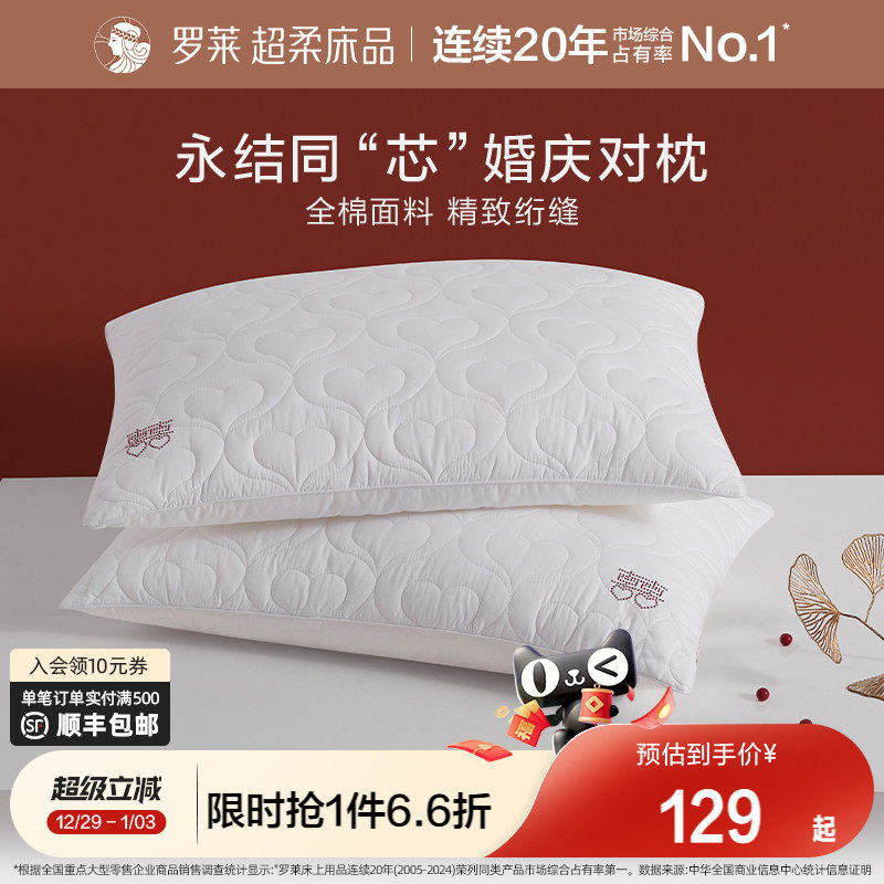 罗莱家纺婚庆结婚枕芯一对装成人枕头全棉纤维枕护颈枕双人情侣