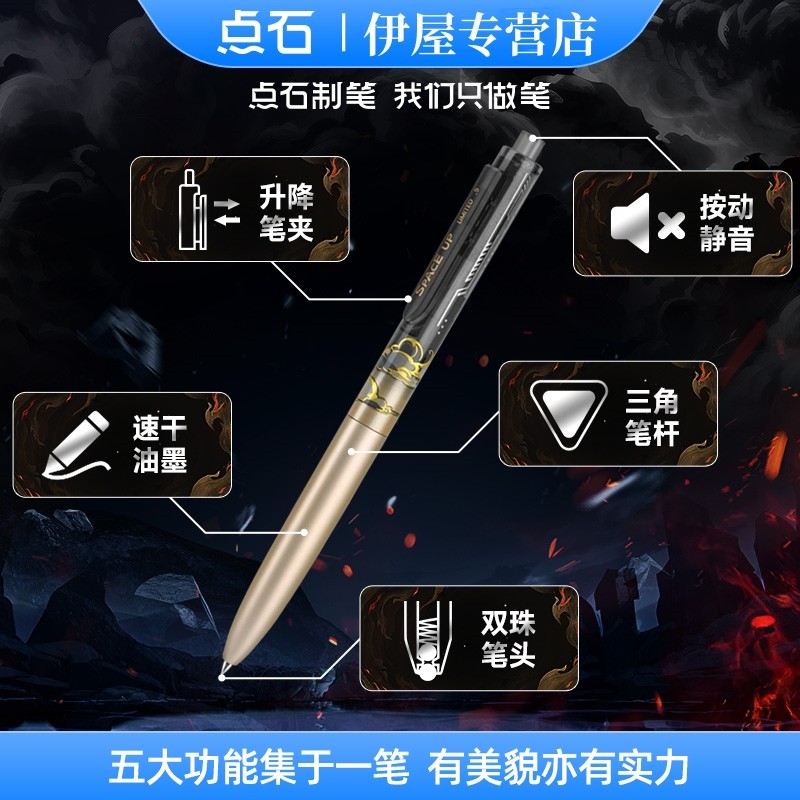 【新品限定款】新款点石制笔时空舱黑时空双珠速干按动中性笔高颜值太空舱刷题笔学生专用子弹头静音笔0154A3