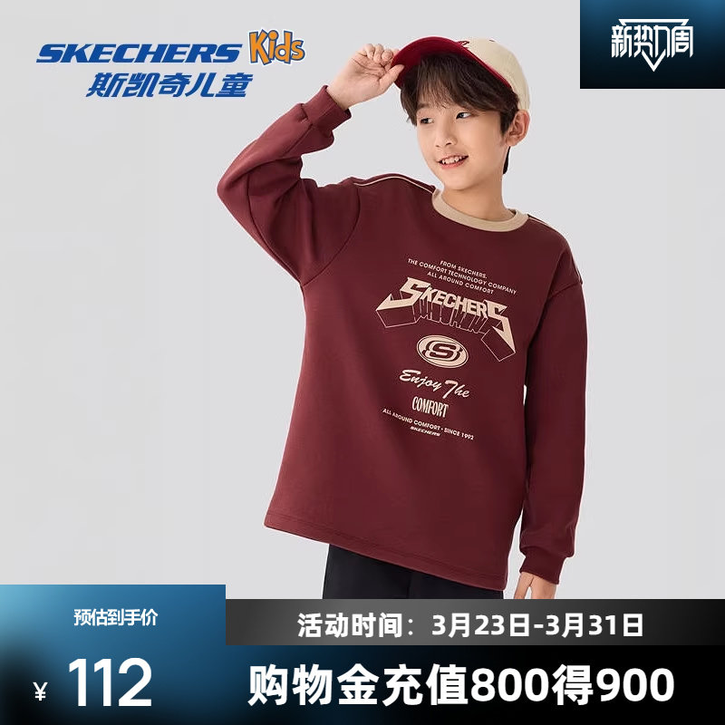 斯凯奇童装亲子装卫衣绒衫冬季男女同款柔软舒适日常运动逛街