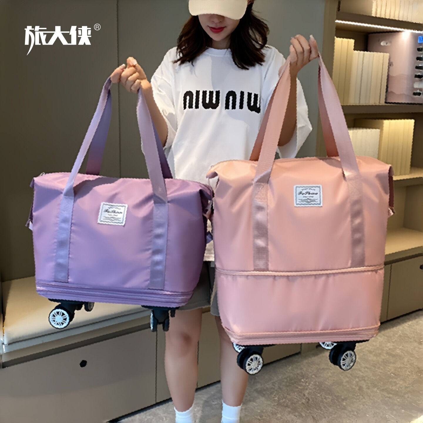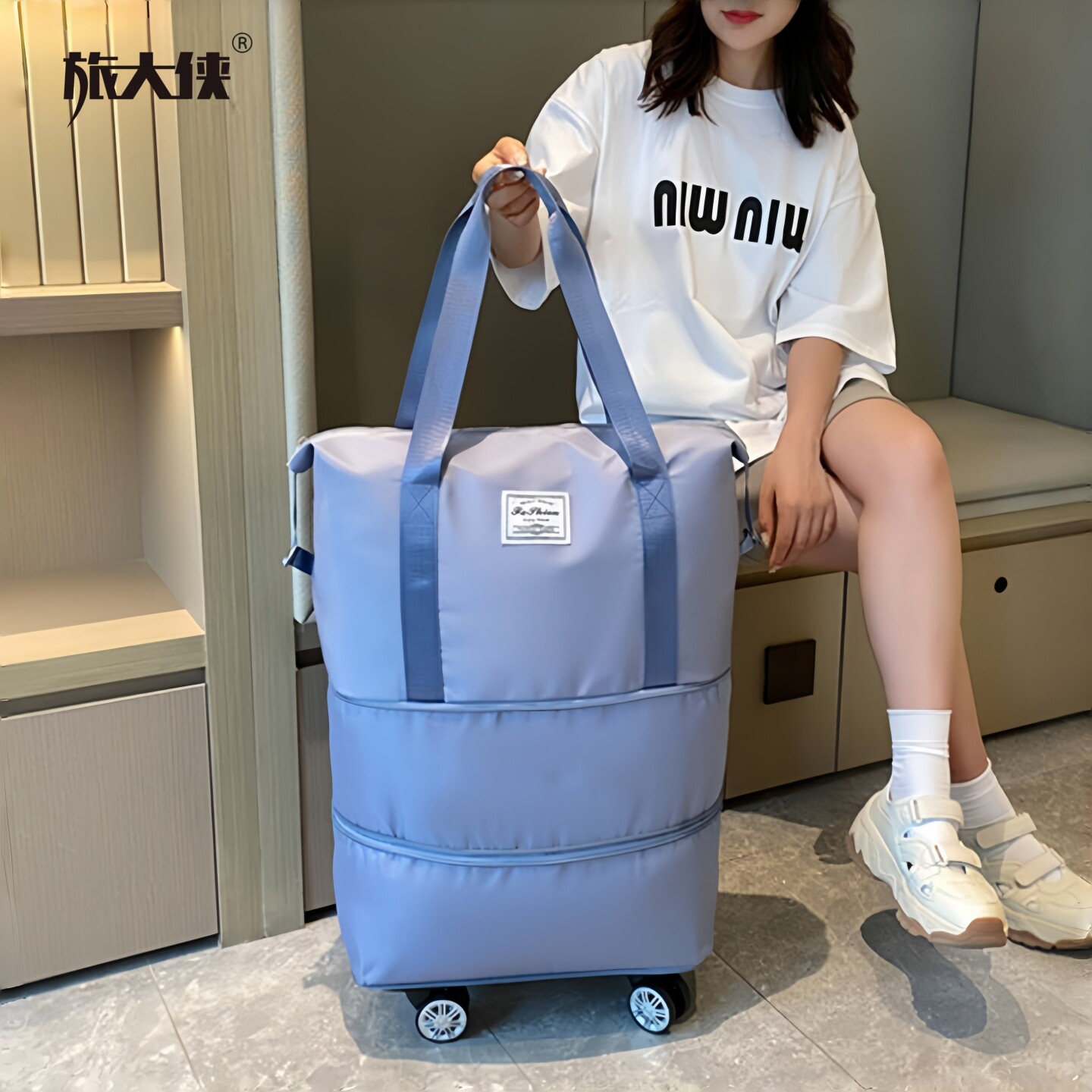 旅大侠万向轮旅行包2026年新款便携扩容行李袋带滑轮大容量收纳包