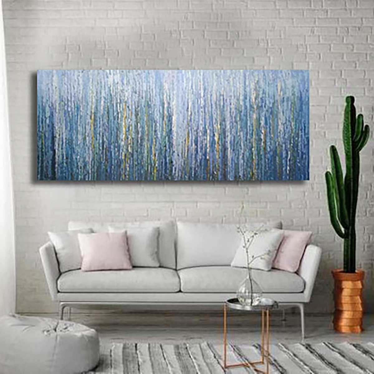 纯手绘油画客厅现代简约沙发后面的挂画横幅抽象大气轻奢壁画餐厅