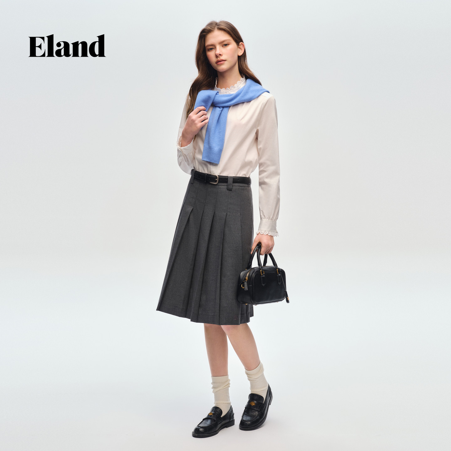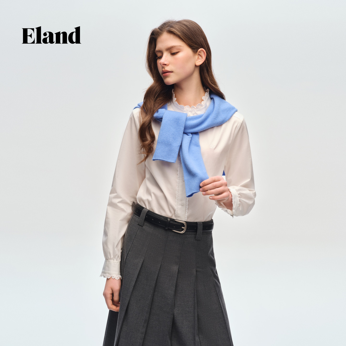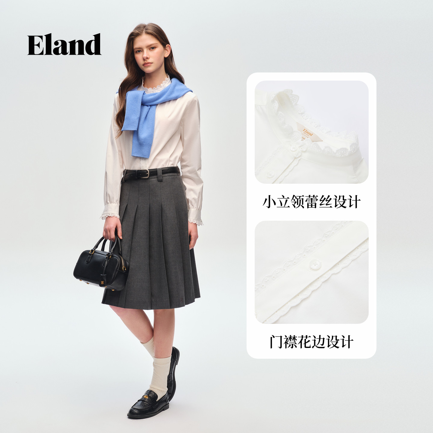 Eland衣恋衬衫女花边立领长袖衬衫气质显瘦通勤上衣2026春季新款