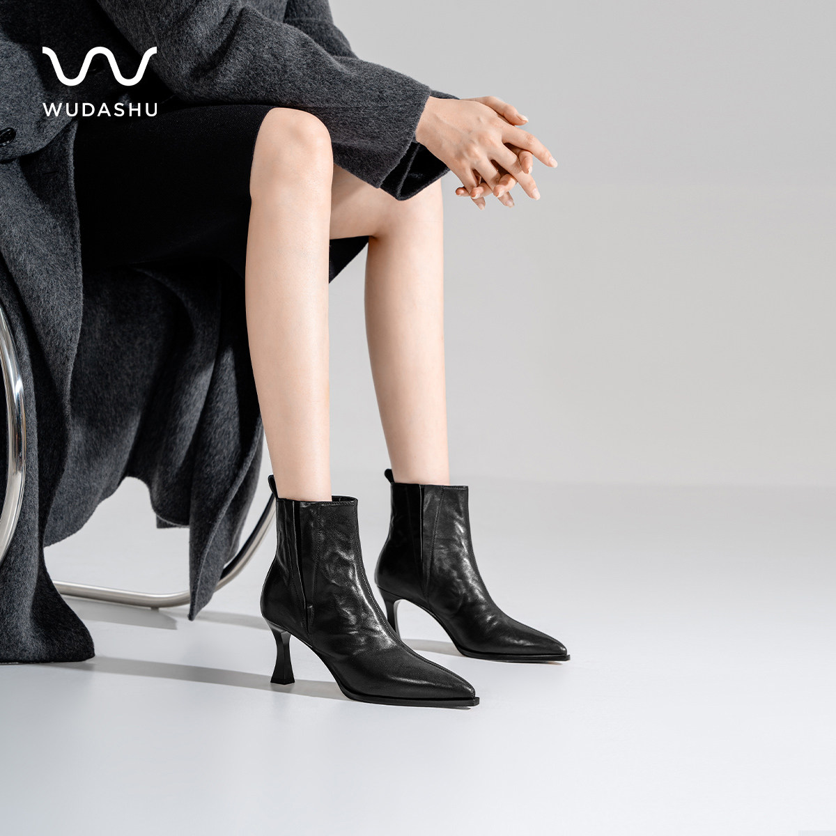 吴大叔2025秋冬巨好看靴子棕色气质高跟女靴气垫缓震时尚尖头短靴