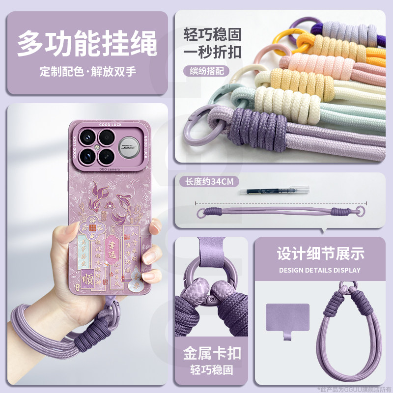 锦鲤文字适用红米K90promax手机壳K90套k90pro新款保护k80至尊版k70腕带pro链挂绳k60硅胶pro女k50年k40的外p