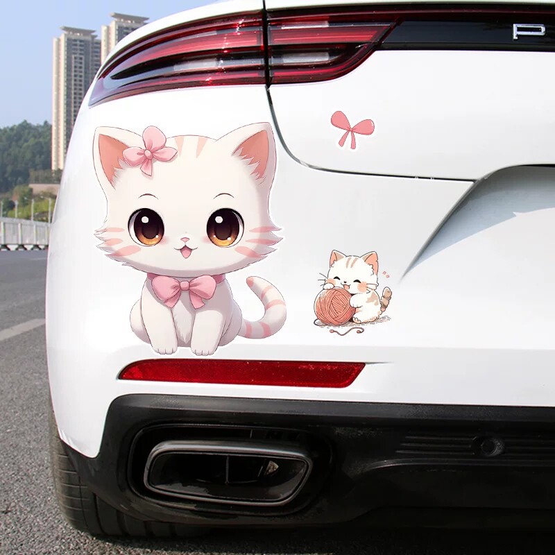 可爱粉猫咪卡通萌趣汽车贴纸电动车摩托车划痕遮挡防水装饰车贴