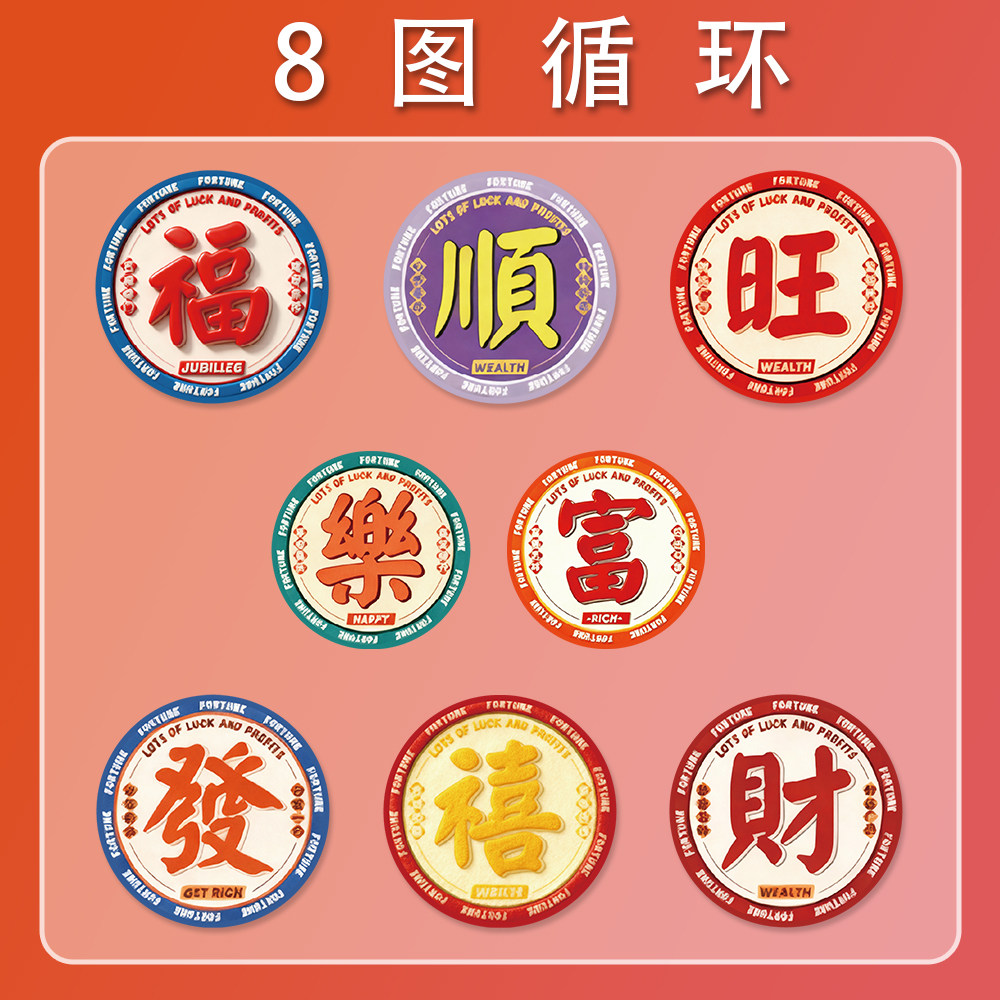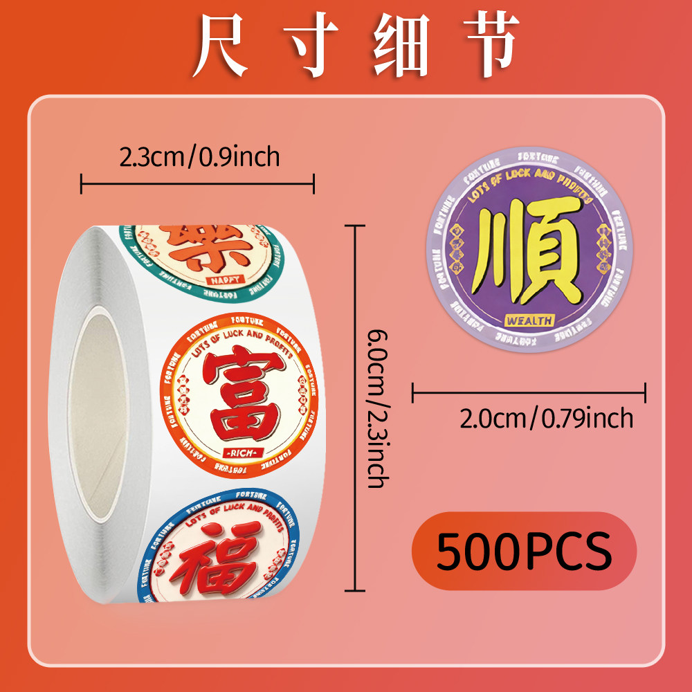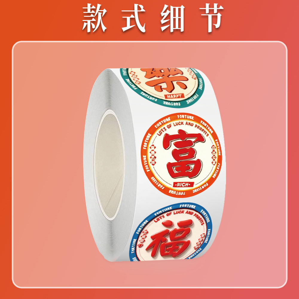 复古港风福字标签贴纸迷你小号圆形封口贴新年春节装饰手账素材贴