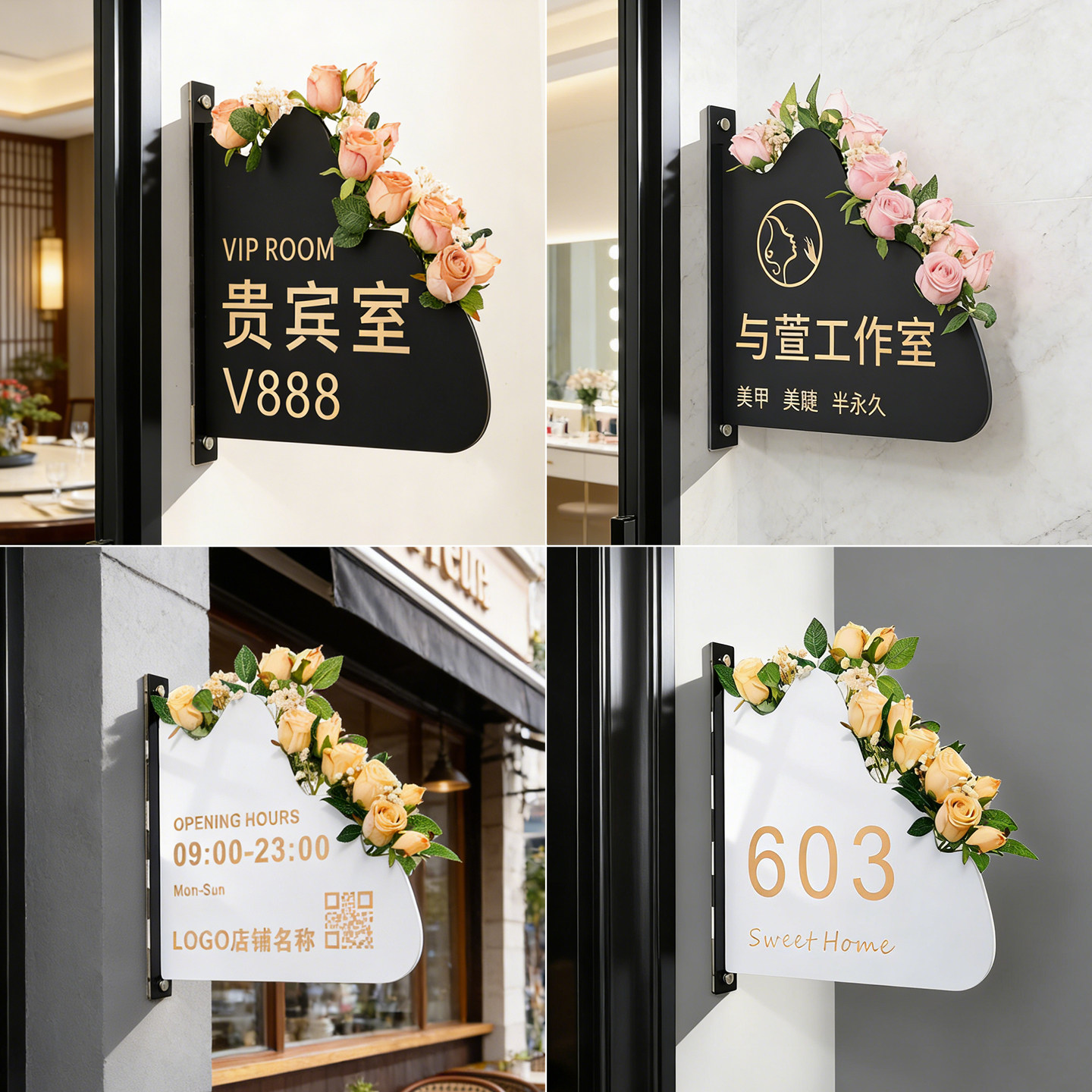 营业时间告示牌外出提示店铺休息有事挂牌门店电话号码挂门双面侧挂定制门口广告展示上班营业中插花装饰招牌
