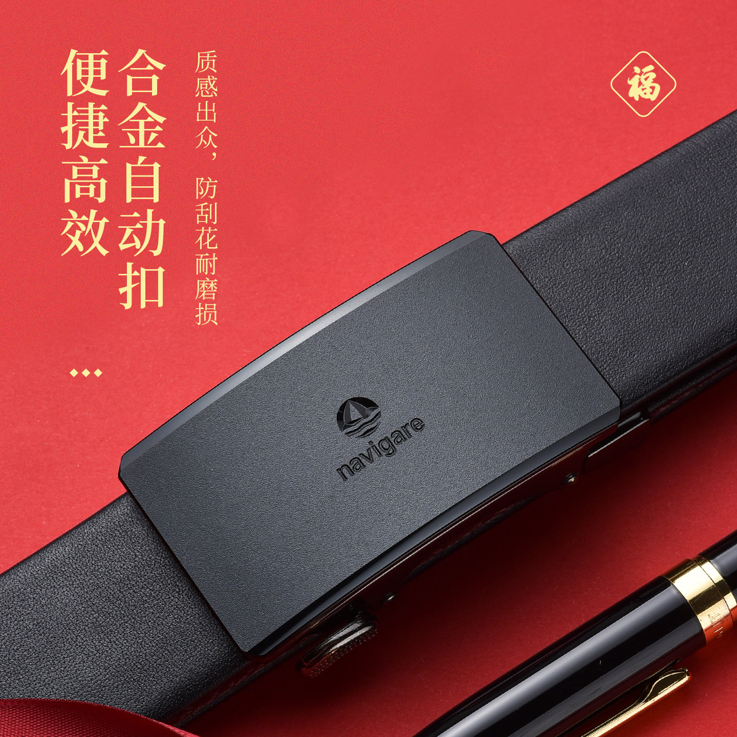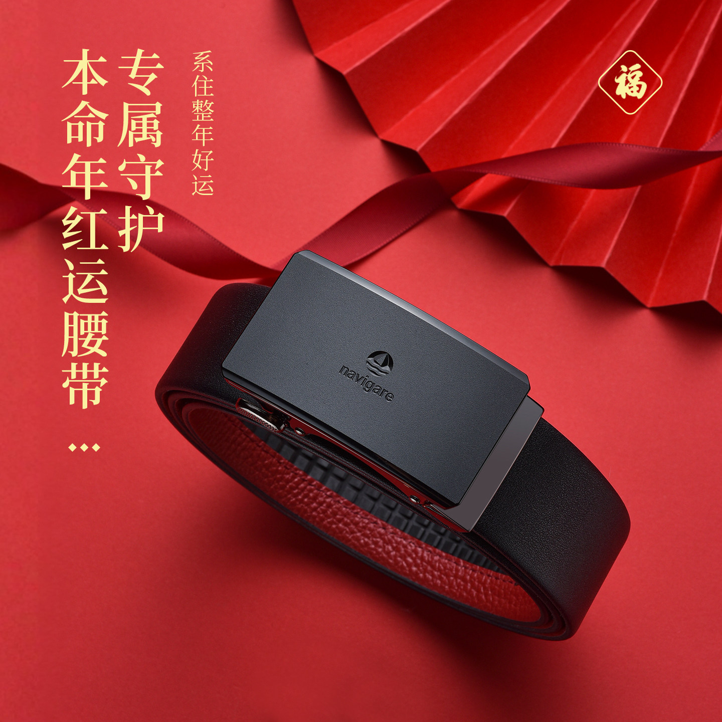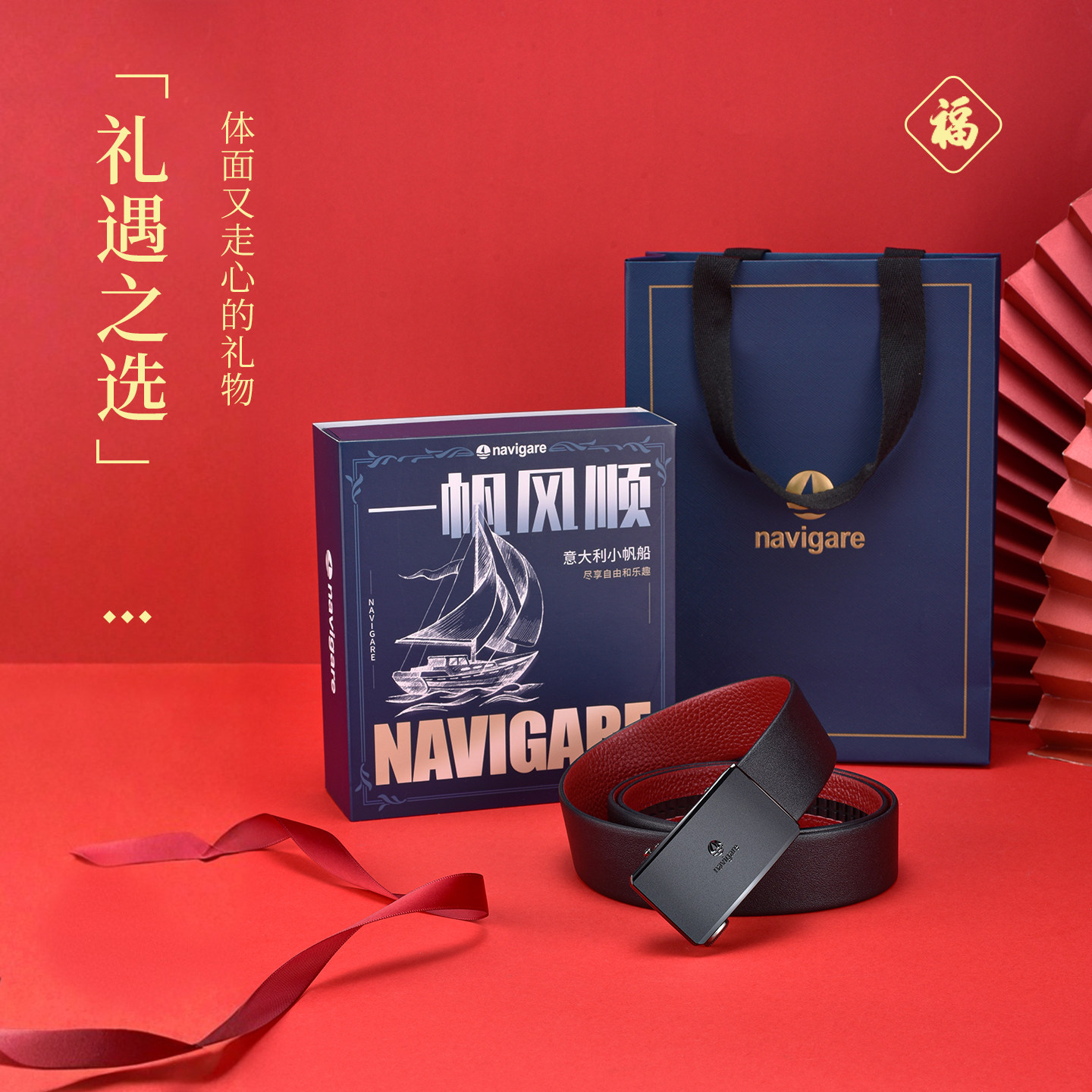 【本命年】Navigare意大利小帆船内扣皮带男款结婚真皮裤腰带红色