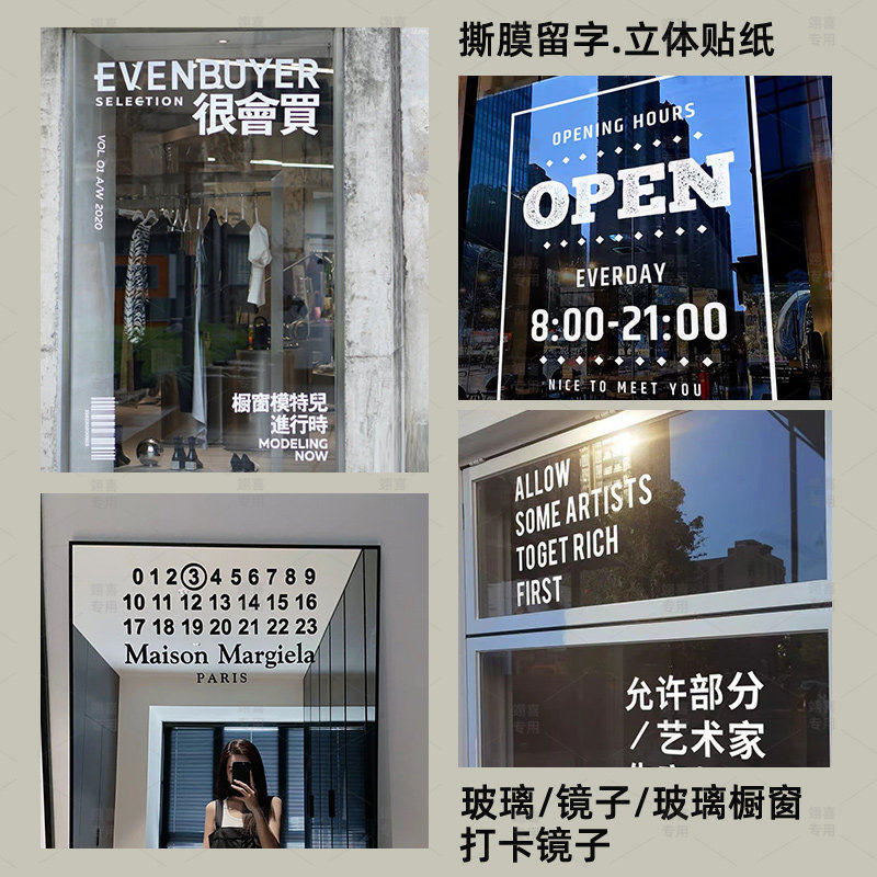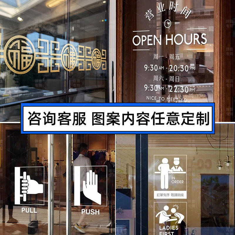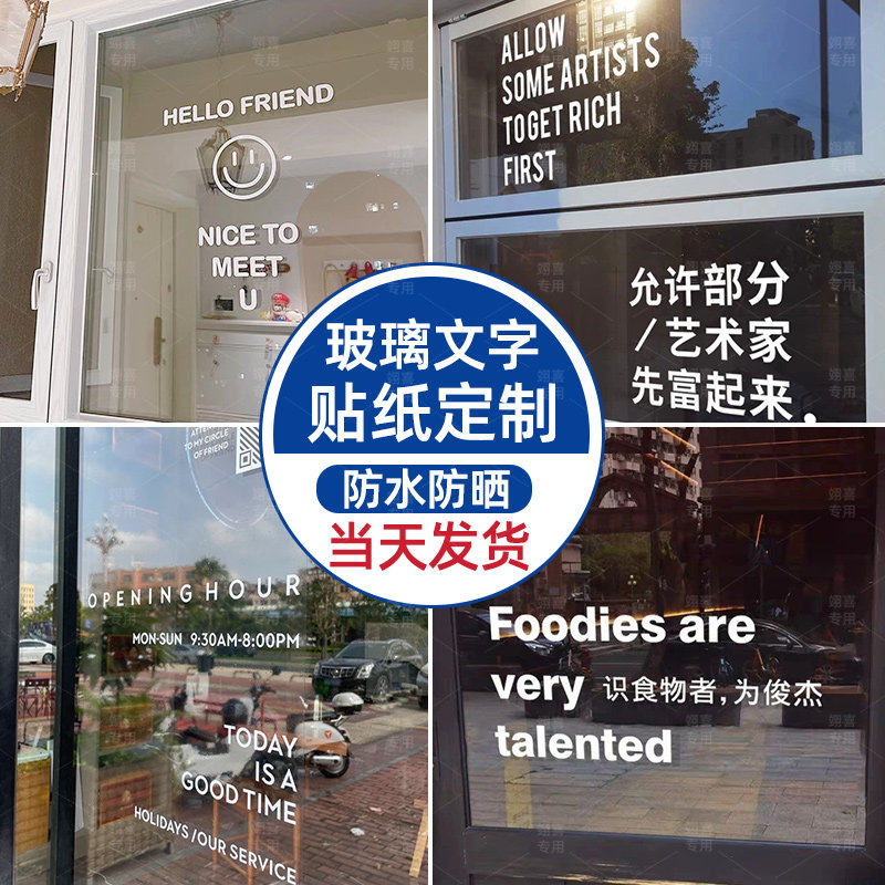 转印贴纸定制玻璃文字橱窗装饰画文化墙自粘墙贴镜面英文创意防撞图案带胶打印刻字广告防水不干胶标签设计