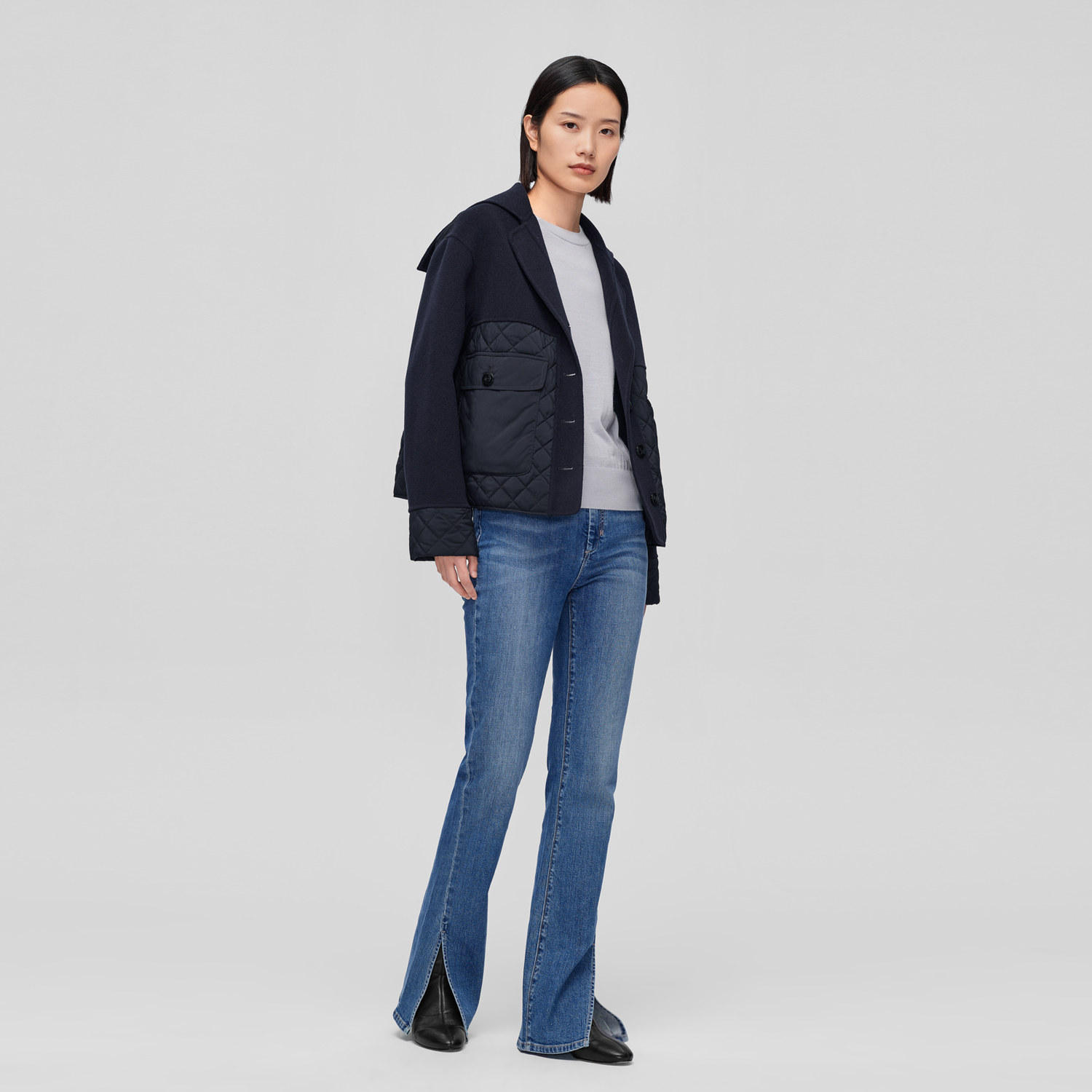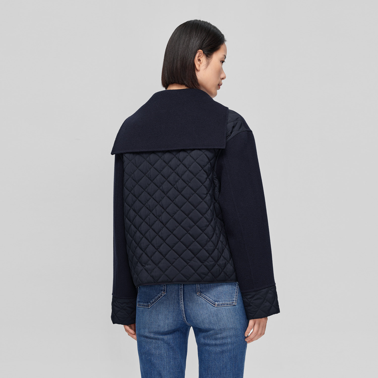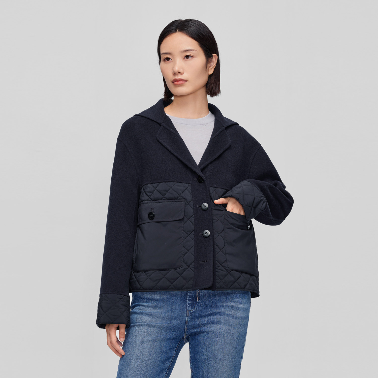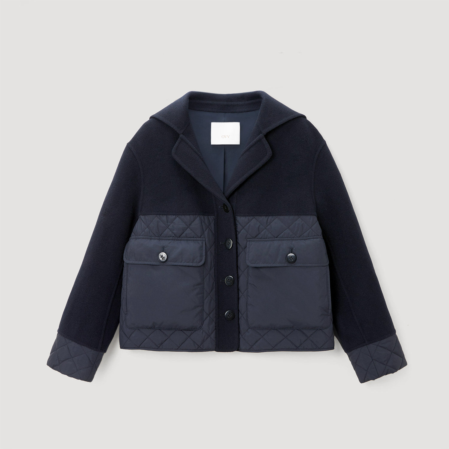 OVV秋冬新款女装经典翻领双面呢拼接短款薄棉服