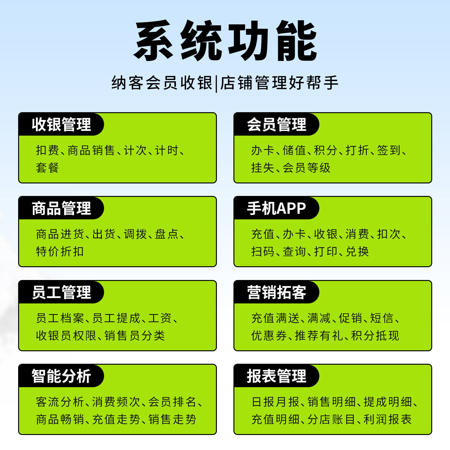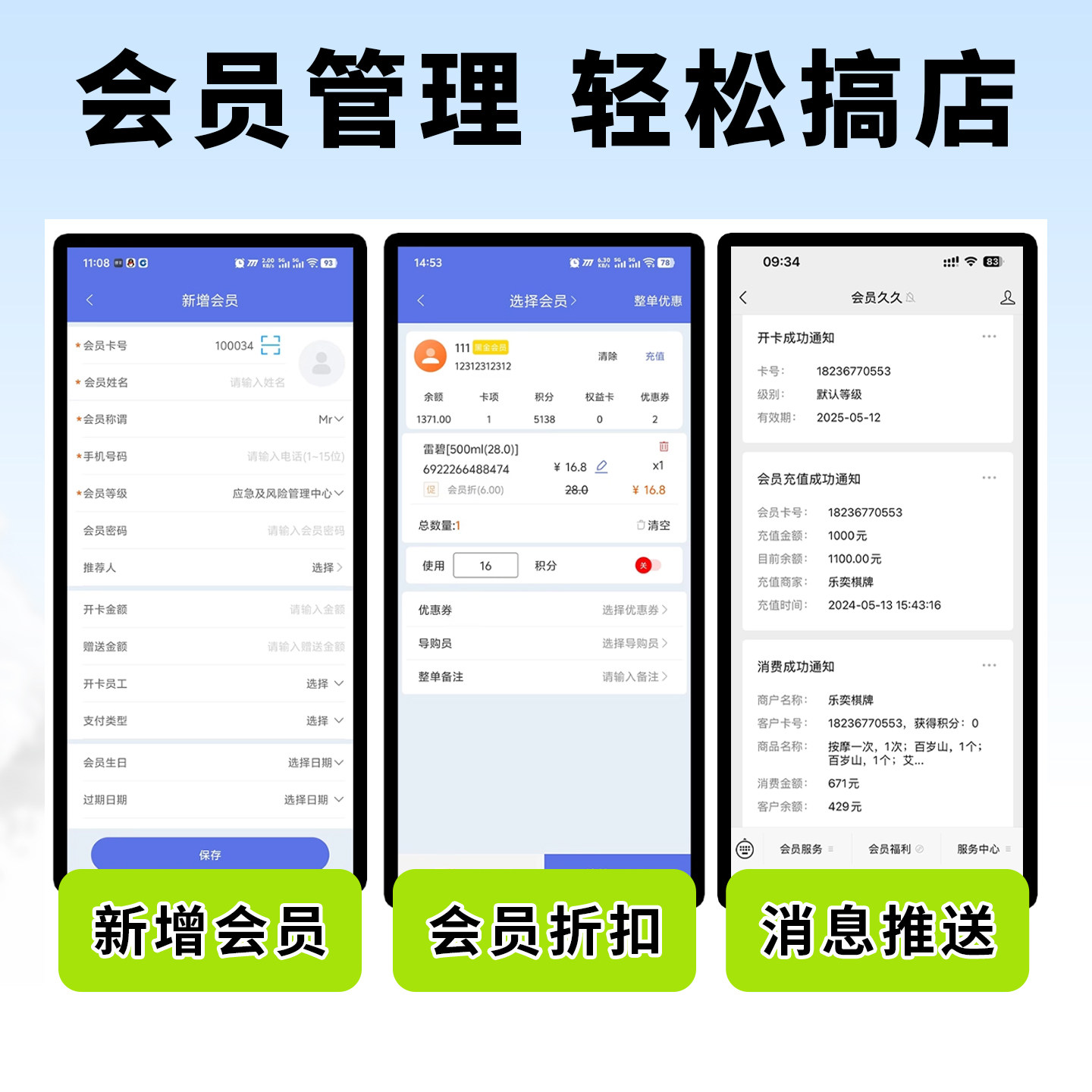 会员卡管理系统美业美发理发美容院棋牌室超市便利店餐饮服装店收银软件小程序储值积分扣费充值消费一体机