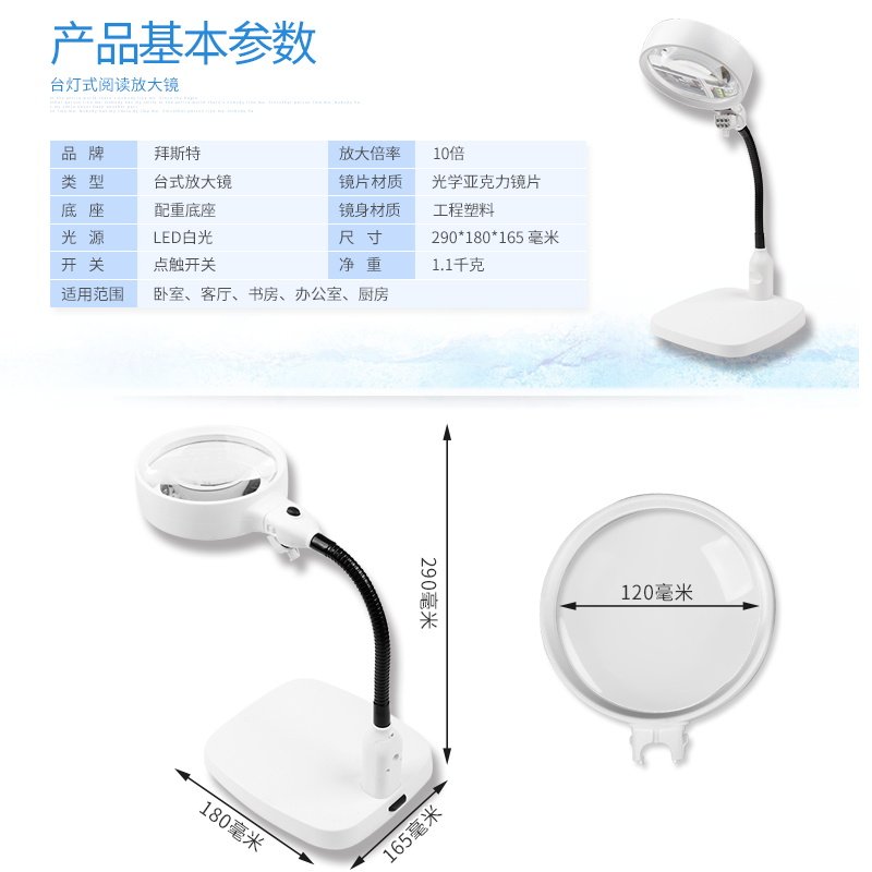台式放大镜带灯10倍高清老人学生阅读手机书报纸支架桌面台灯维修