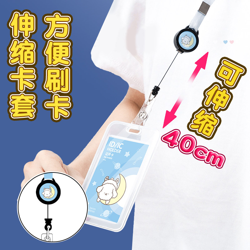 得力卡套公交卡证件保护套带挂绳学生校园饭卡工作证透明卡膜工牌厂牌挂脖硬卡包防丢神器胸牌胸卡伸缩