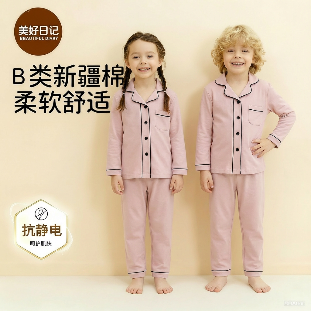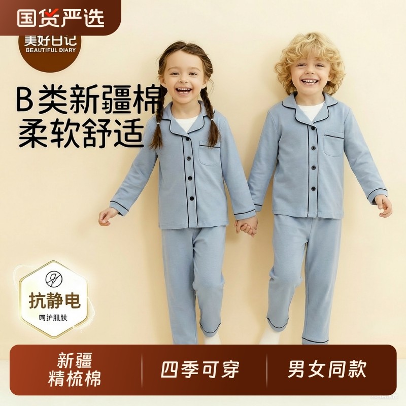 久岁伴儿童睡衣男春秋长袖宽松空调服薄款透气女童开襟家居服套装
