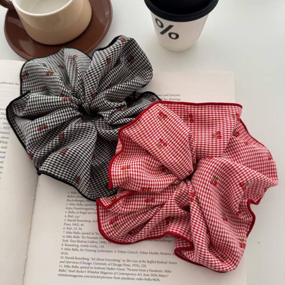 时尚韩版格子樱桃大肠圈ins风发带高马尾头绳女扎头发橡皮筋格纹