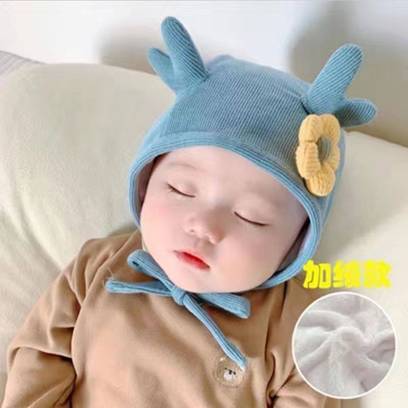 【新品首发】嫚熙婴儿帽子火山小磨毛秋冬季男女童保暖胎帽宝宝