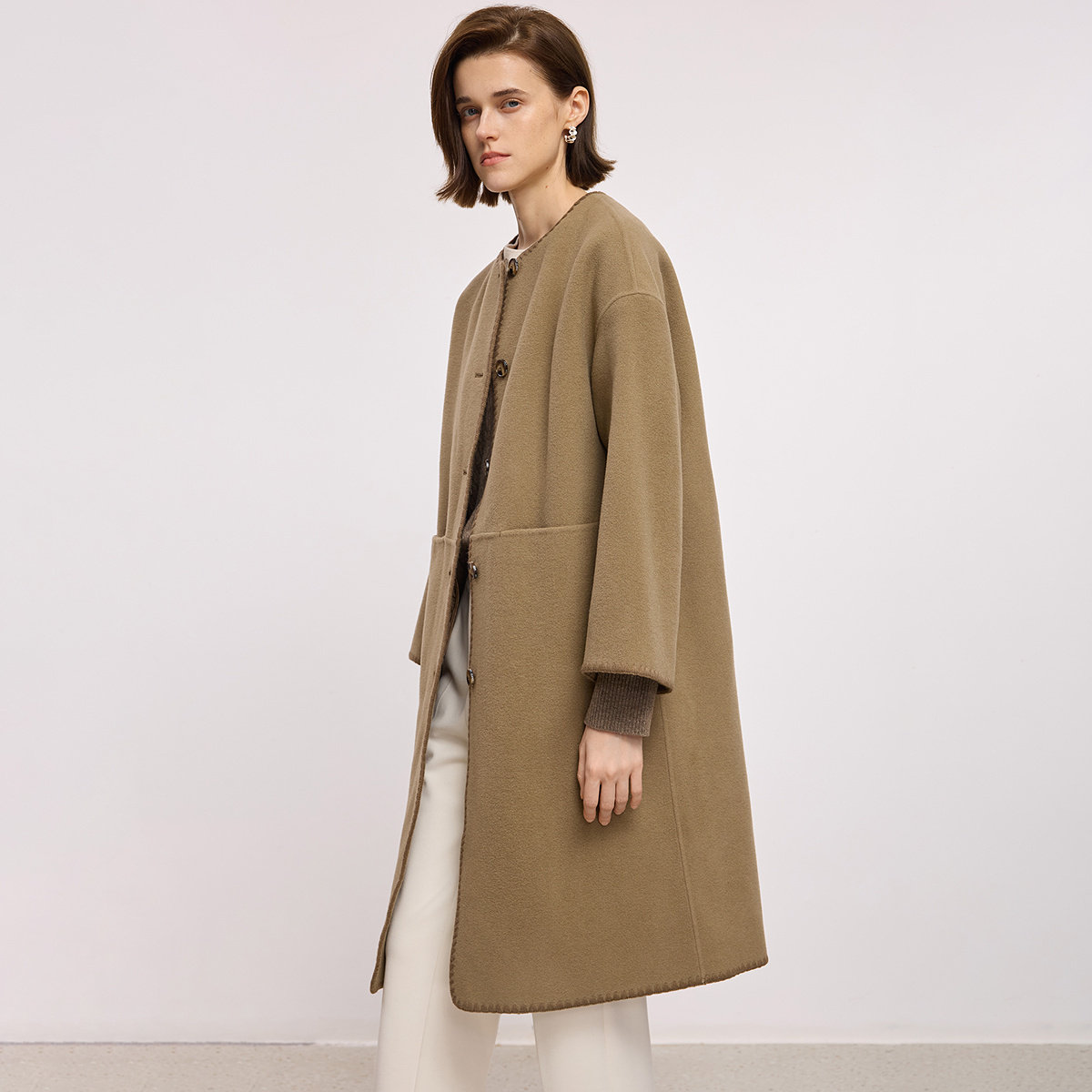 MPAM绵羊毛羊绒双面呢大衣时尚气质立领羊毛外套女