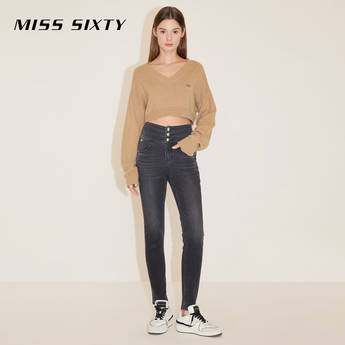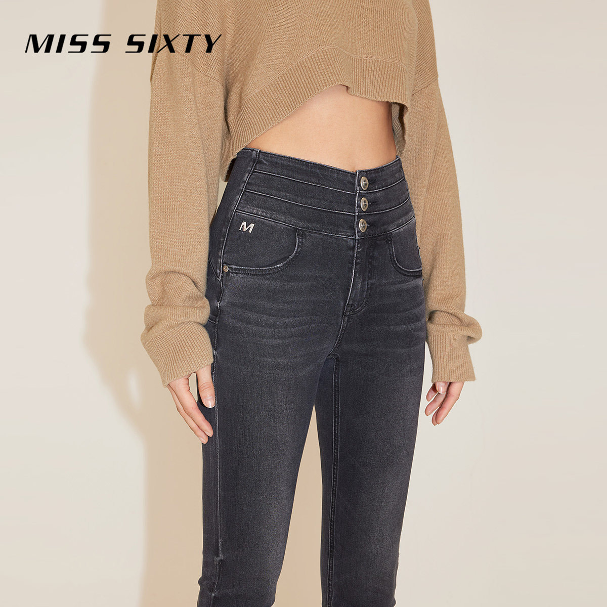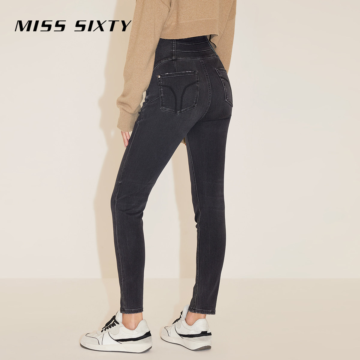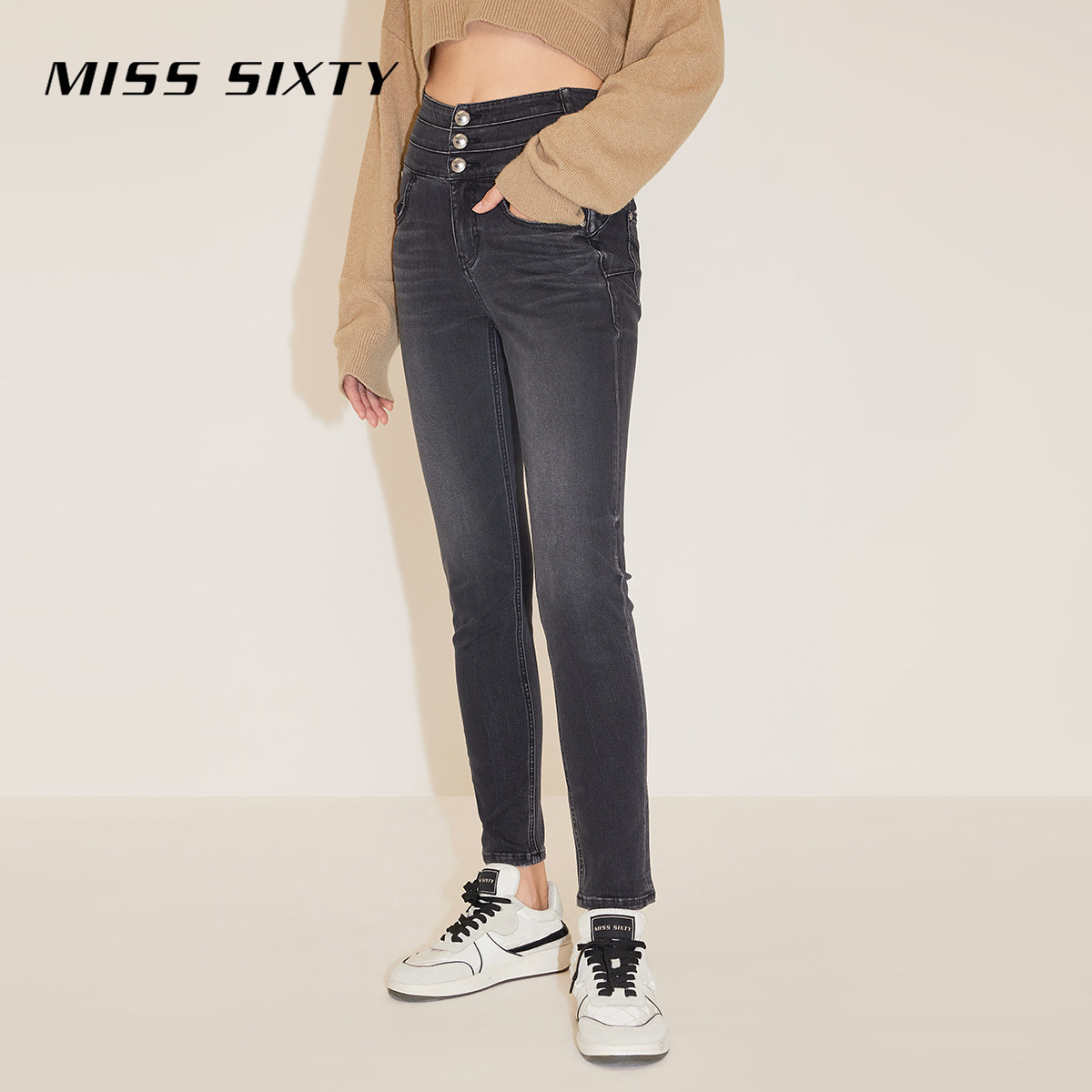 Miss Sixty牛仔裤复古显瘦百搭女三环高腰修身铅笔裤小脚裤靴裤