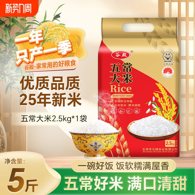谷殿当季新米五常大米5斤东北黑土种植优质一等软糯香甜真空锁鲜