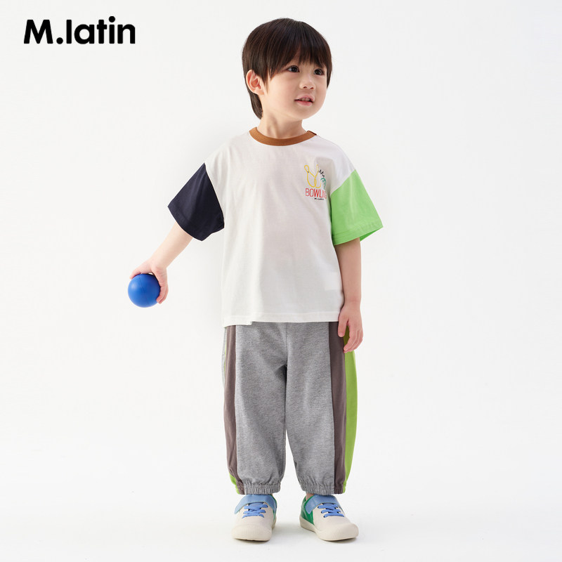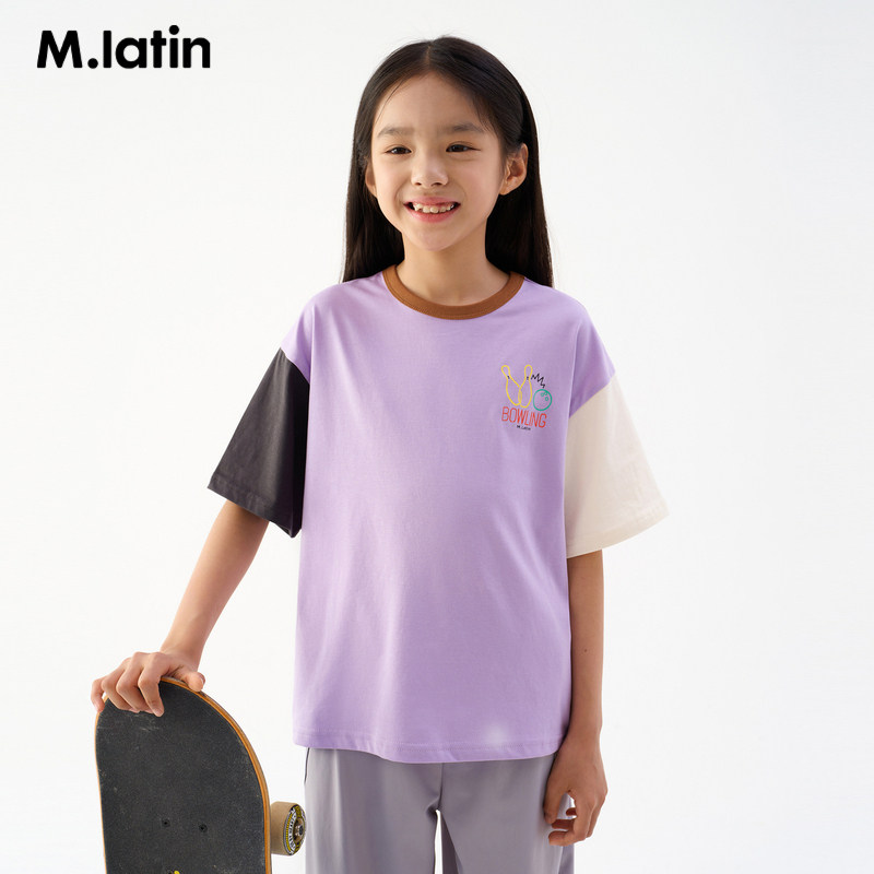 马拉丁童装儿童T恤夏装新款男女童大童小童冰氧酷撞色短袖T恤
