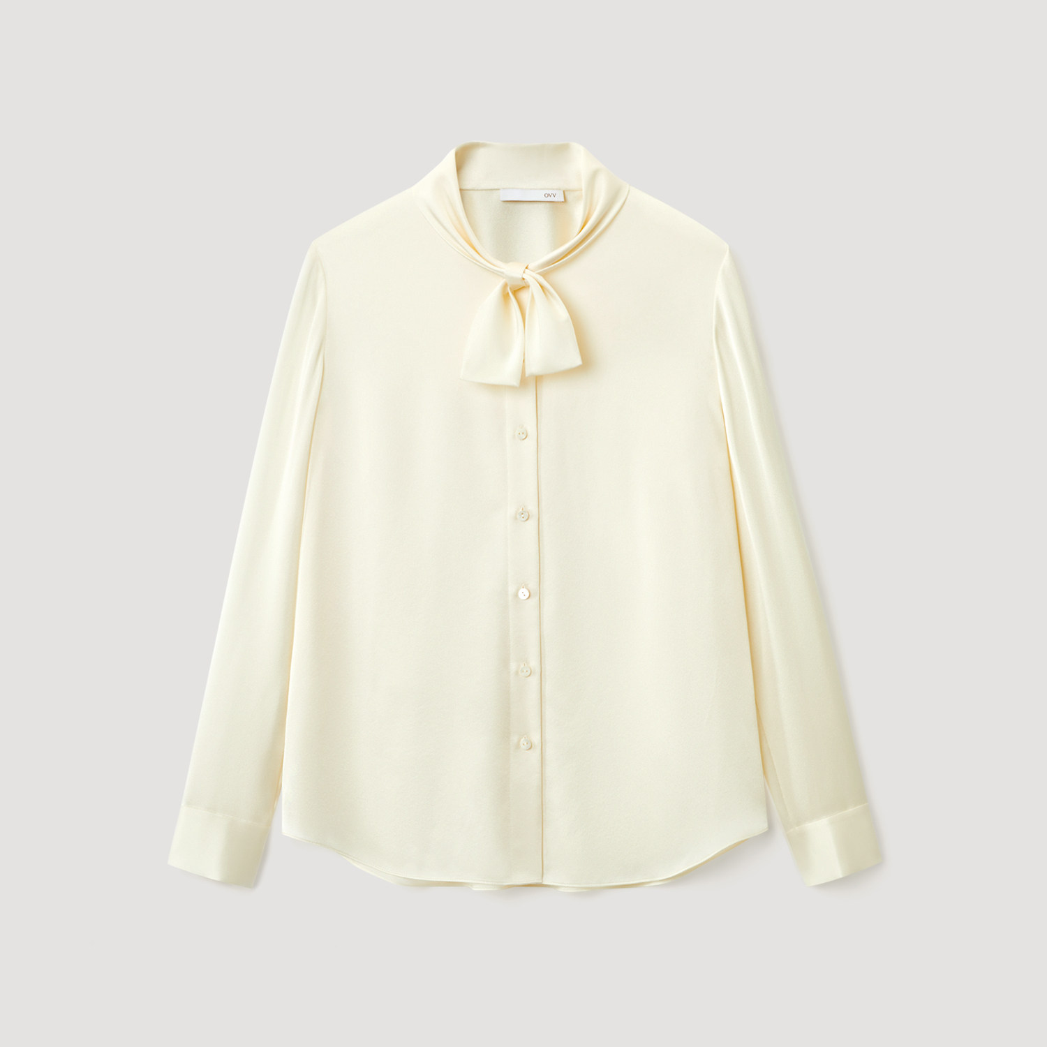 OVV2025秋冬新款女装优雅飘带20MM缎面绉真丝长袖休闲衬衫